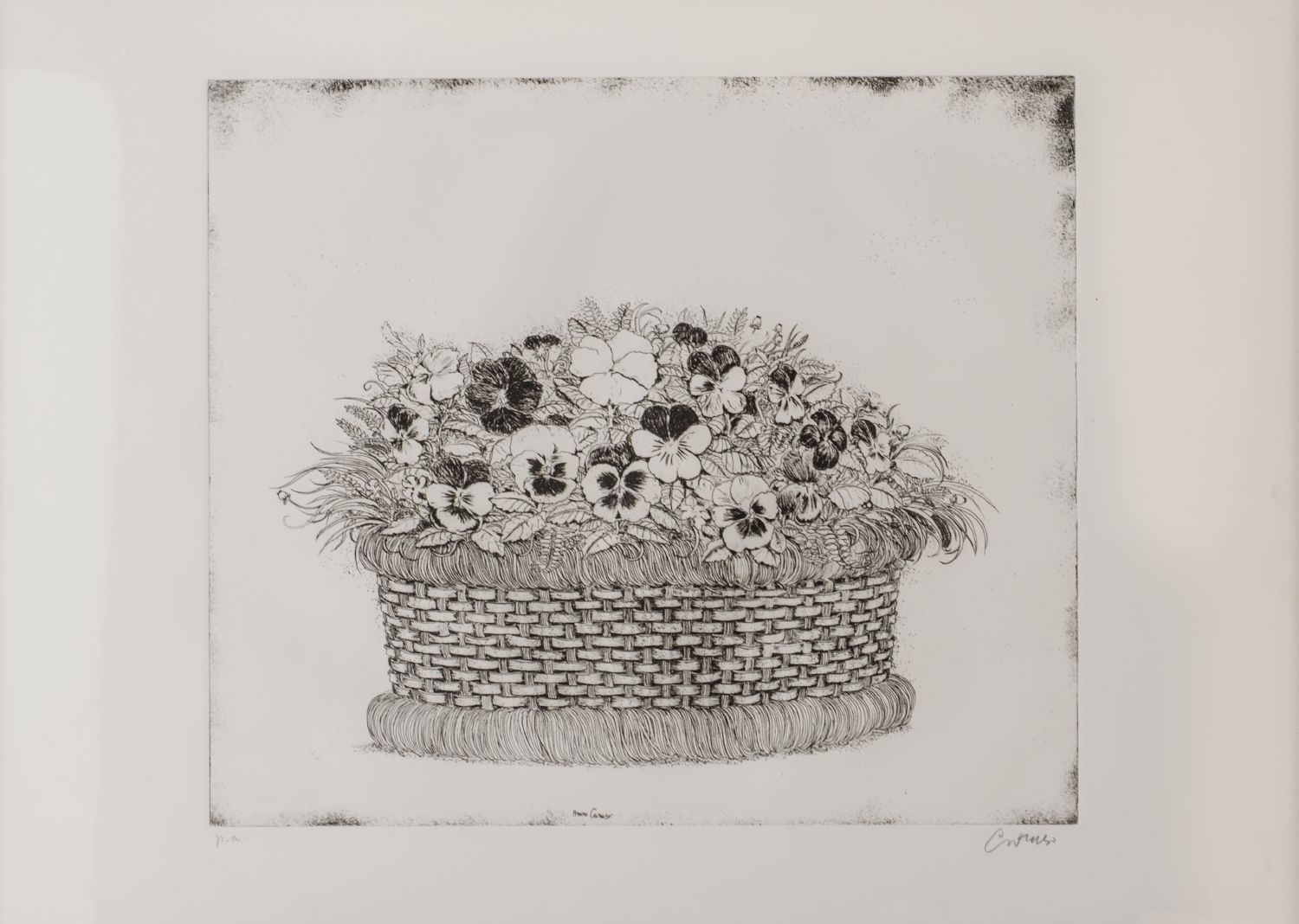 BRUNO CARUSO (Palermo 1927) INCISIONE prova d'autore "cesto di fiori". Misure: cm 76 x 56