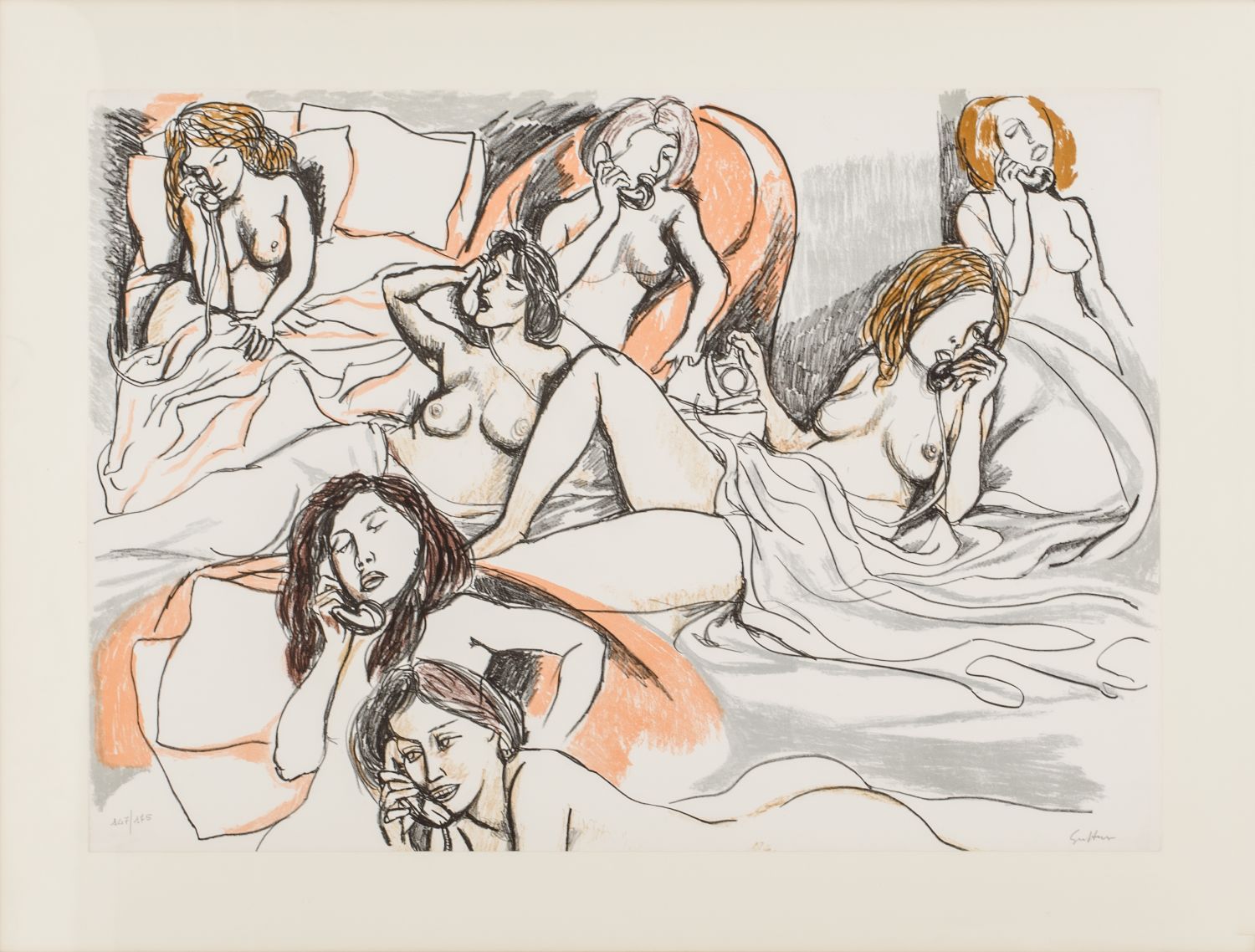 RENATO GUTTUSO (Bagheria (Pa) 1911 - Roma 1987) LITOGRAFIA a colori "nudi femminili", esemplare 147/175. Misure: cm 70 x 50