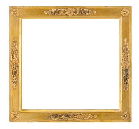 CORNICE stile Impero in legno dorato ad argento a mecca (cm 69 x 64). Sicilia XX secolo Misure: cm 83,5 x 78,5