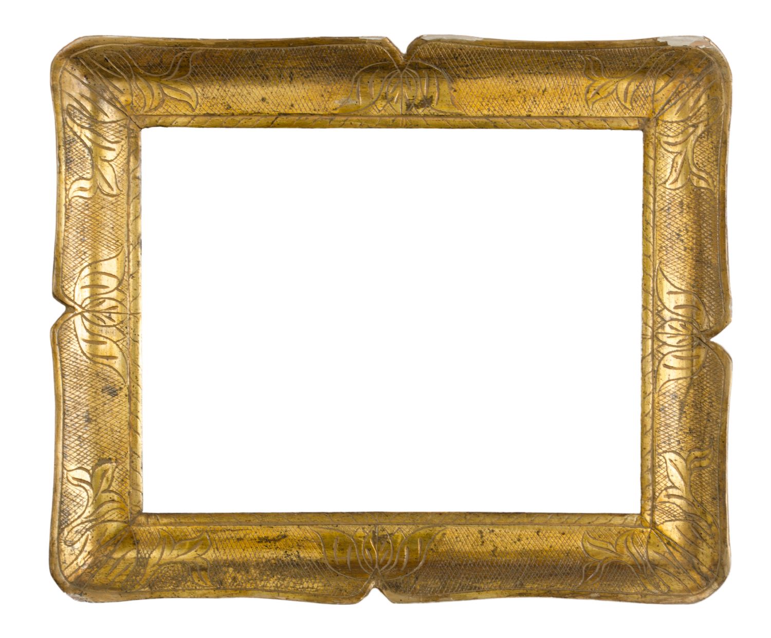 CORNICE a guantiera in legno dorato ad argento e mistura (cm 40 x 51,5). Sicilia XIX secolo Misure: cm 63,5 x 52