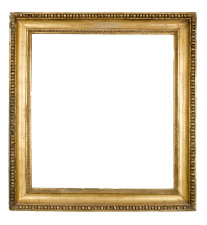 CORNICE Impero a mezza canna in legno dorato ad oro zecchino (cm 64 x 70). Sicilia primi '800 Misure: cm 80 x 86