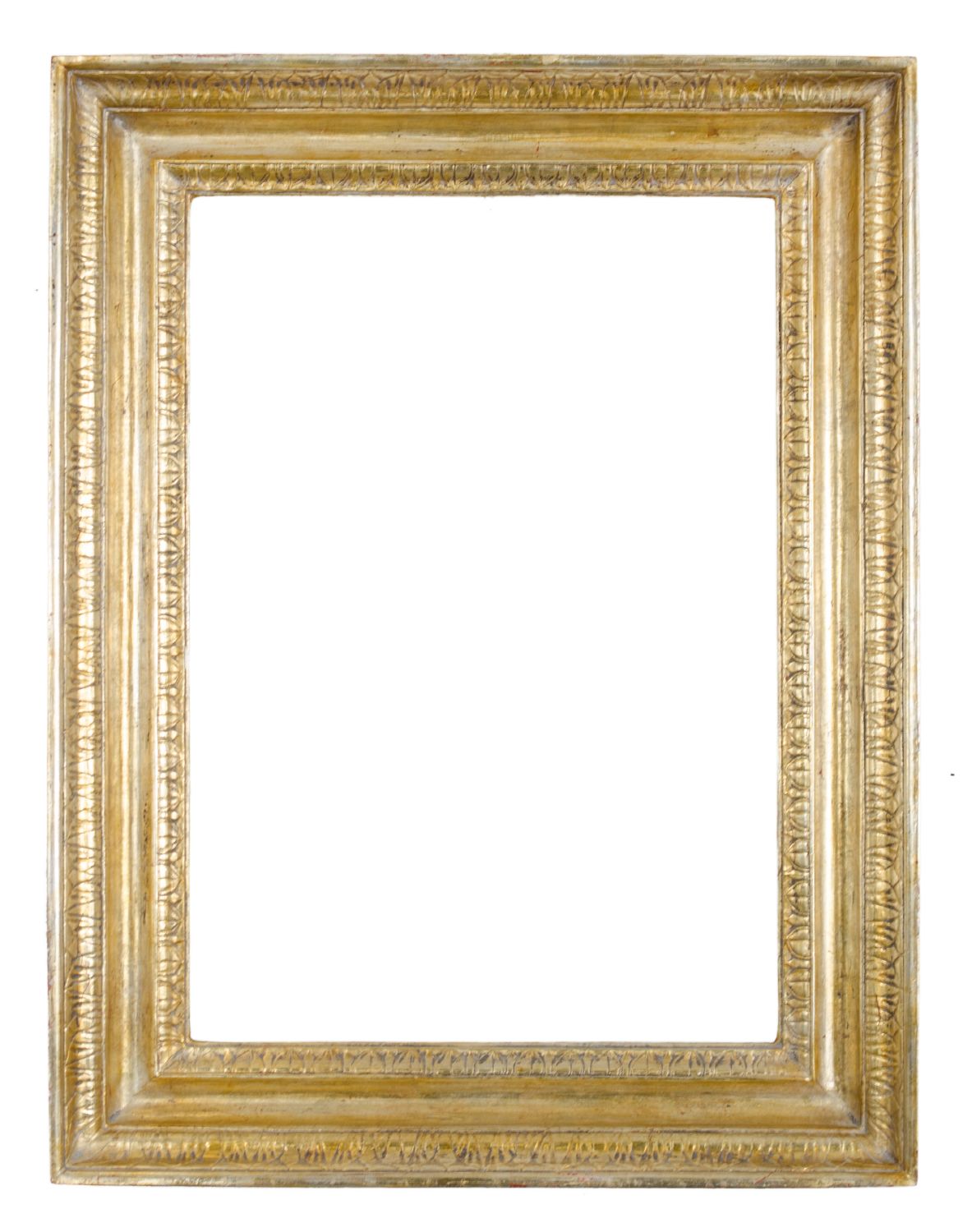 CORNICE Impero in legno dorato ad argento a mecca (cm 54 x 39). Sicilia XIX secolo Misure: cm 69 x 53