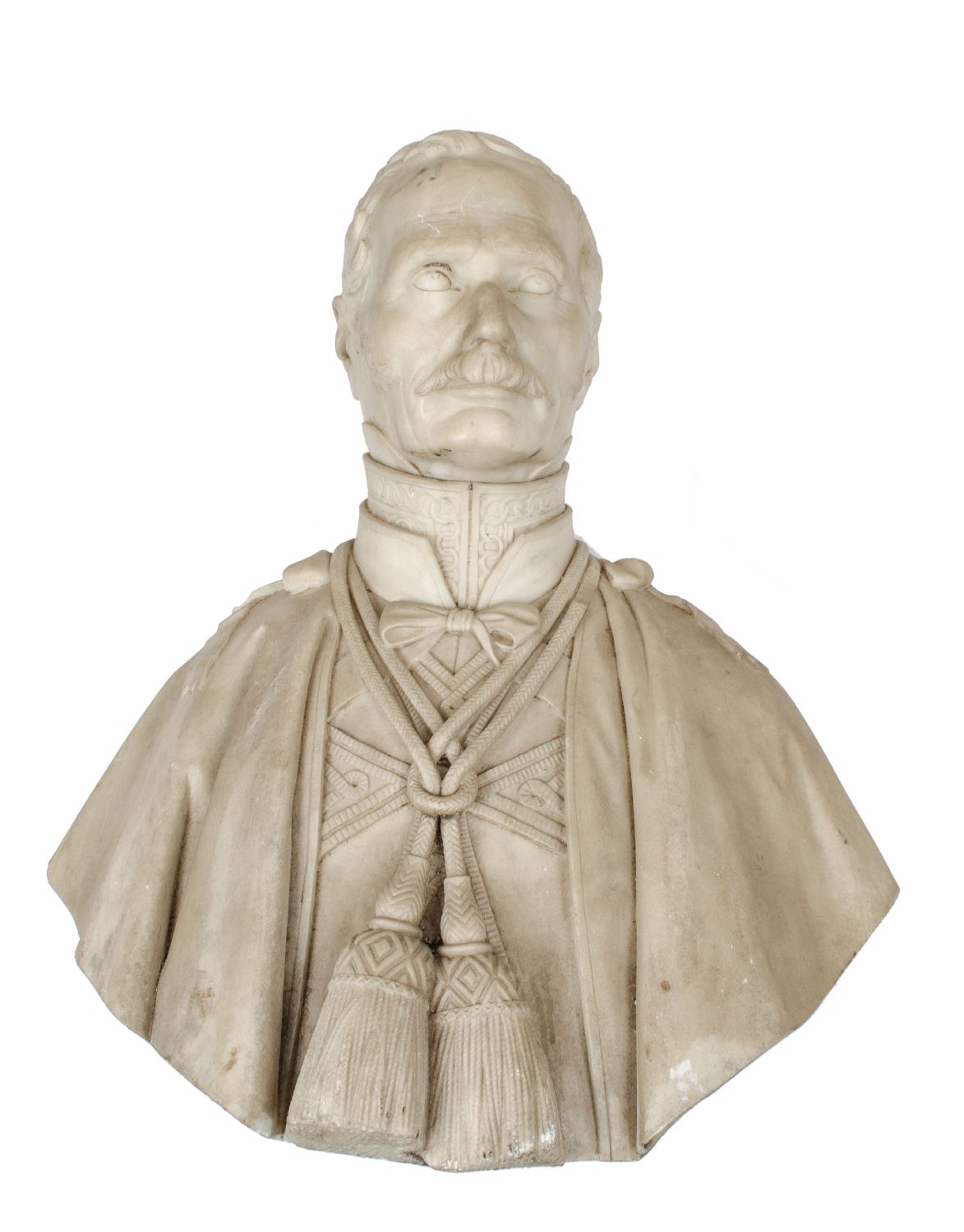 SCULTURA in marmo raffigurante "mezzobusto di gentiluomo". Spagna XIX secolo Misure: h cm 67