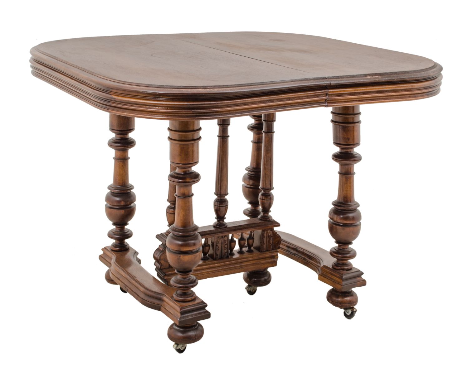 TAVOLO allungabile in noce con tre prolunghi. Francia XIX secolo Misure: cm 110 x 104 x h 80