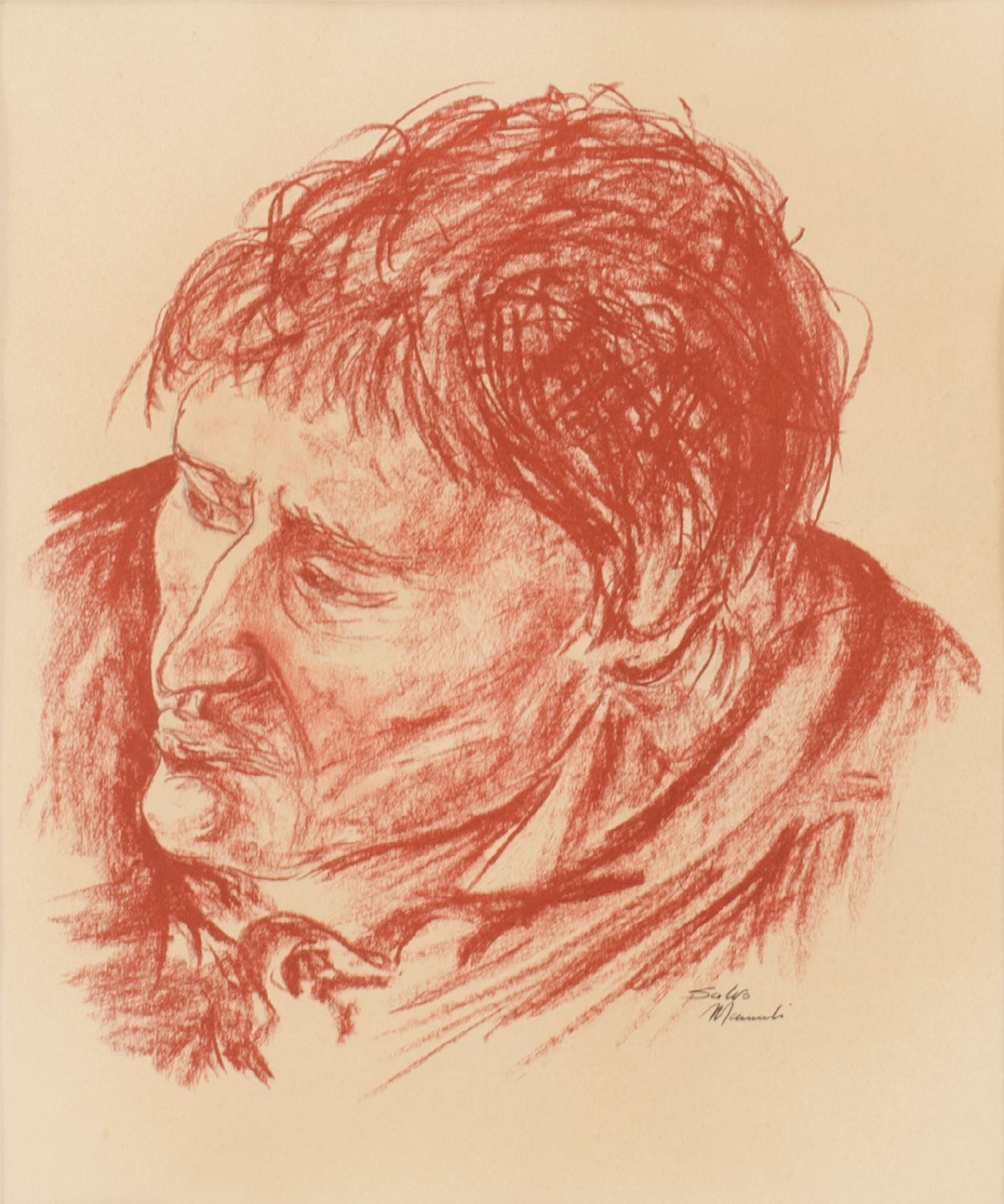 SALVO MANULI (Palermo) SANGUIGNA su carta "volto maschile" firmato in basso a destra. Datato 1976 Misure: cm 30 x 36