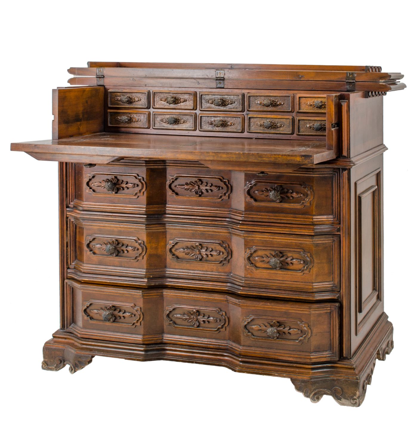 CASSETTONE a tre cassetti in noce, cassetto a ribalta. XX secolo Misure: cm 127 x 54 x h 105
