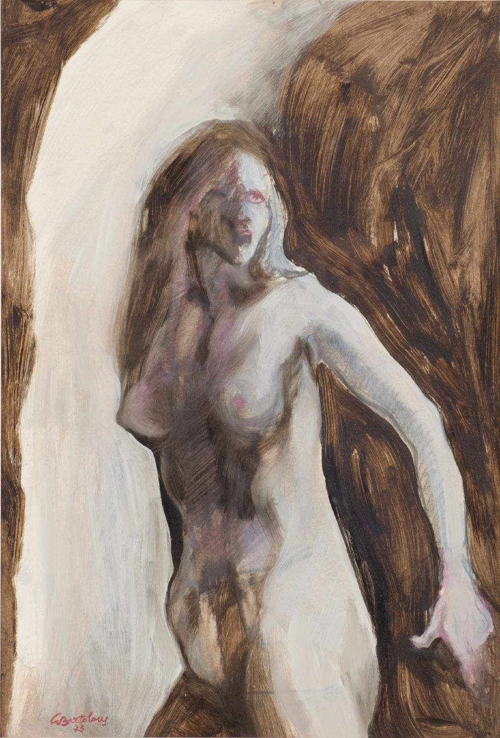 GIOVANNI BARTOLONE OLIO su carta "nudo femminile". Datato 1973 Misure: cm 33 x 48
