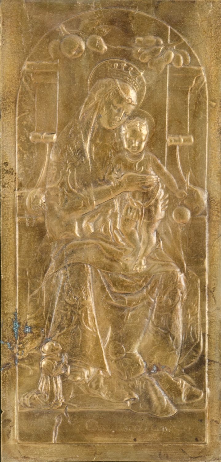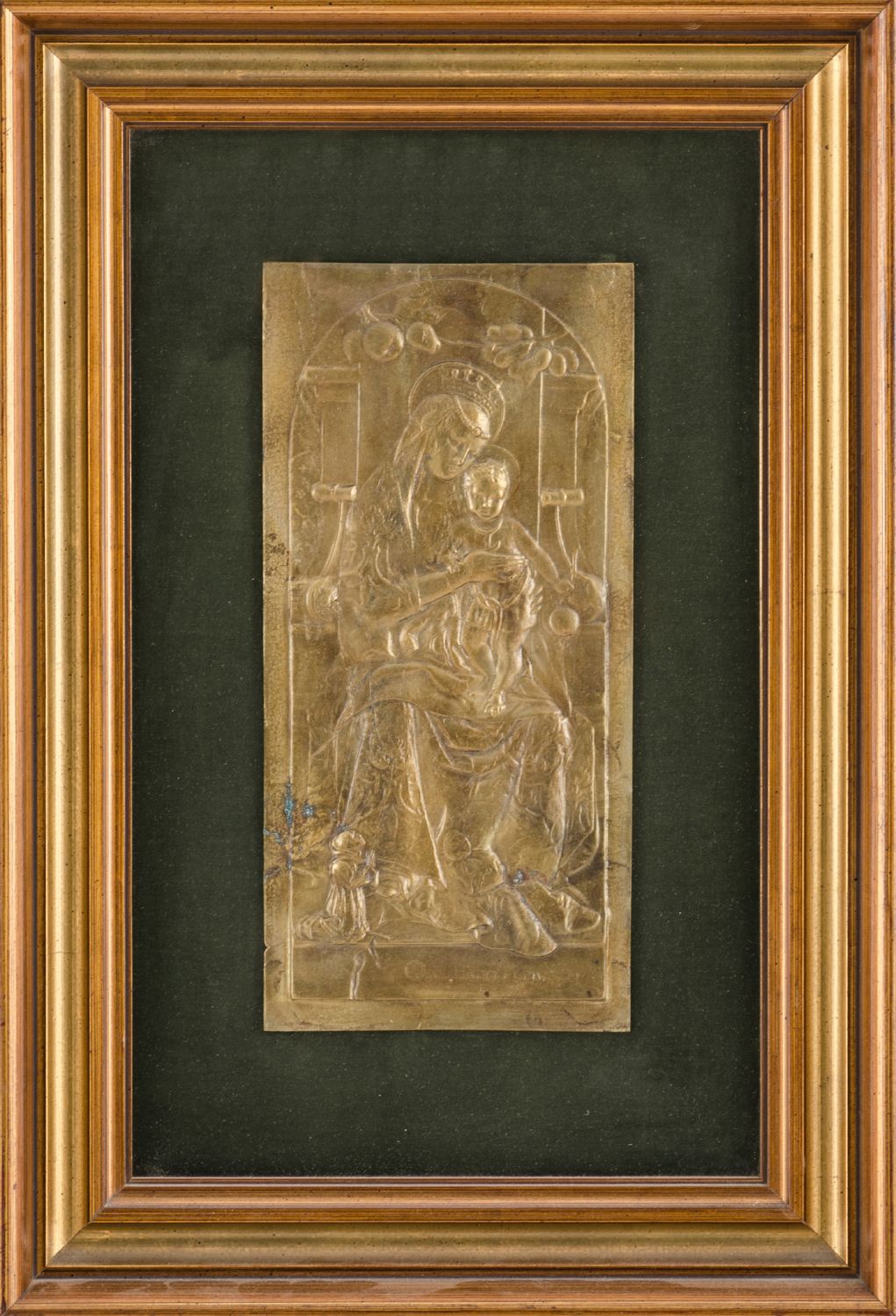 BASSORILIEVO in bronzo patinato "maternita'". XX secolo Misure: cm 20 x 39,5