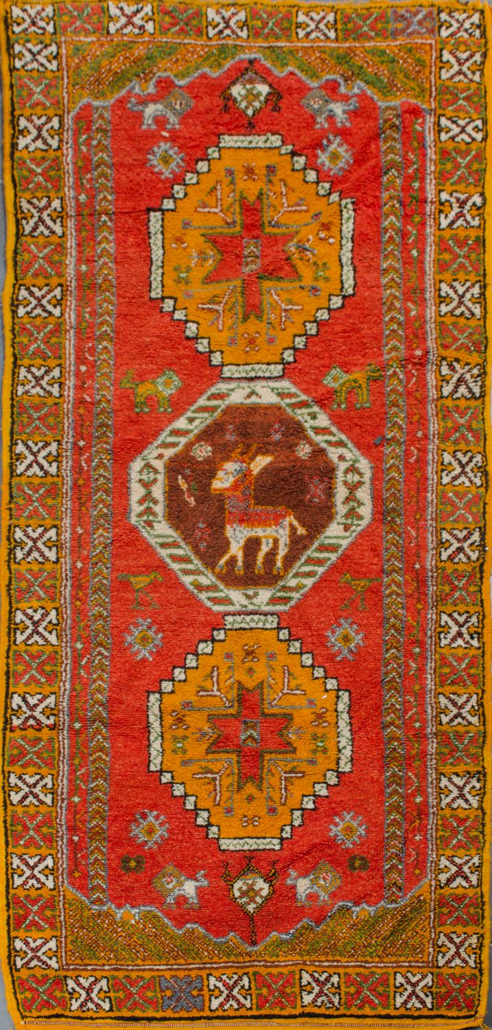 TAPPETO berbero, trama e ordito in cotone e vello in lana. Marocco XX secolo Misure: cm 254 x 109