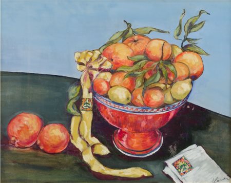 OLIO su tela "natura morta", firmato in basso a destra. XX secolo Misure: cm 70 x 60