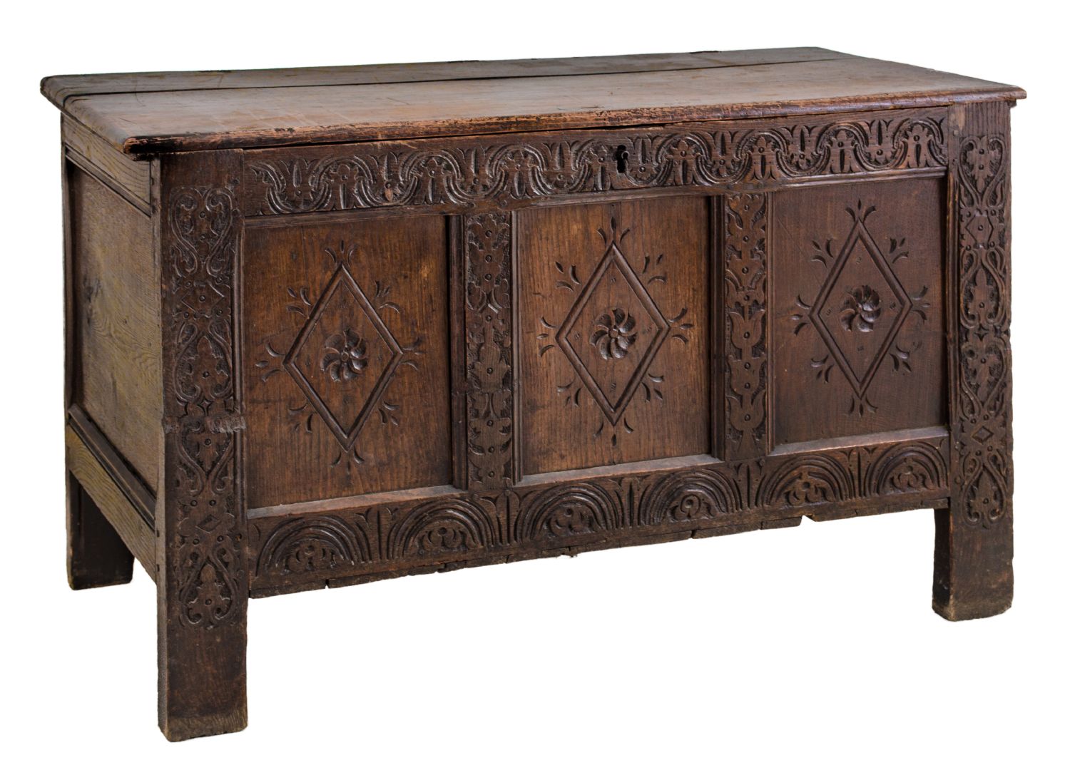CASSAPANCA in castagno con fronte intagliato. Fine XVIII secolo Misure: cm 117 x 51 x h 69