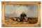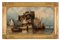 DE COUCHE COPPIA OLI su tela "paesaggi con personaggi" e "borgo marinaro" entro cornici coeve in legno dorato ad oro zecchino. Francia XIX secolo Misure: cm 79 x 46 - 77 x 44,5