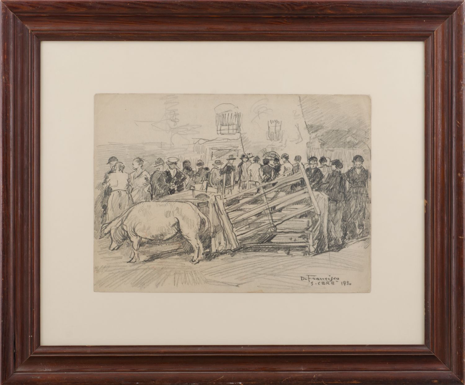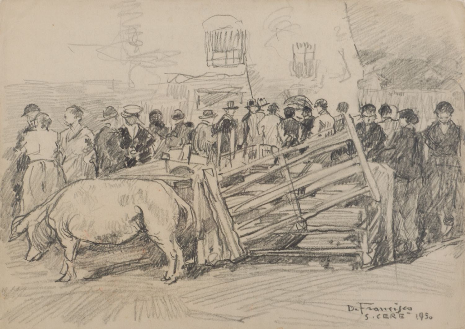PIETRO DE FRANCISCO (Palermo 1873 - Mentone 1969) MATITA su carta "S. Cere' - Folla in campagna" firmato in basso a destra. Datato 1930 Misure: cm 35,5 x 25,5