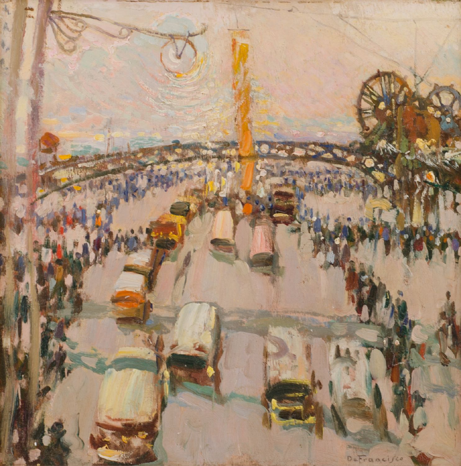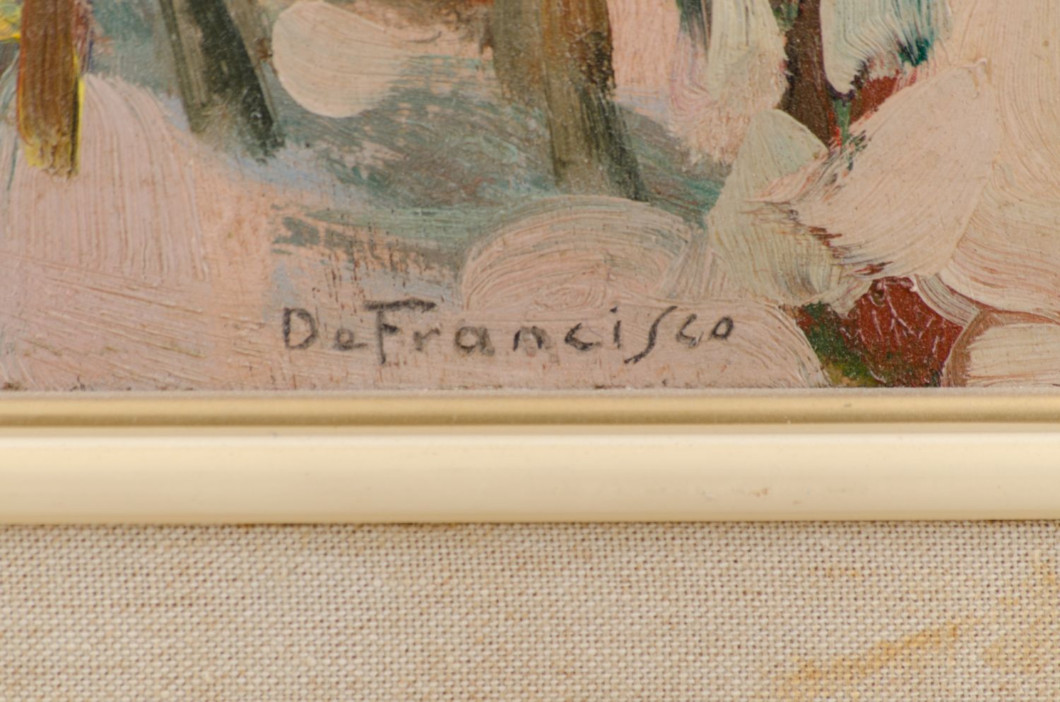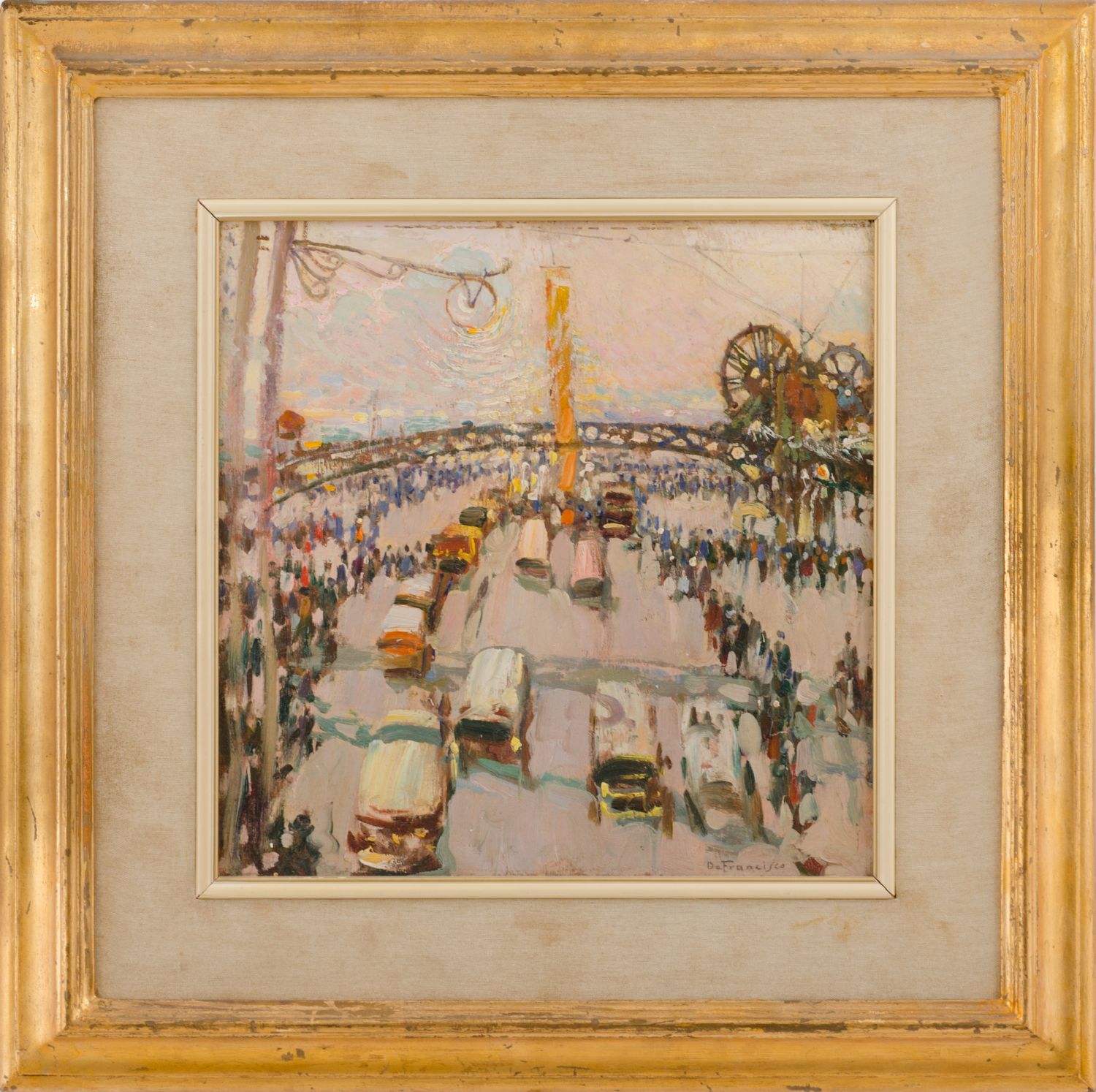 PIETRO DE FRANCISCO (Palermo 1873 - Mentone 1969) OLIO su tavoletta "La Rue", firmato in basso a destra. Misure: cm 36,5 x 36,5