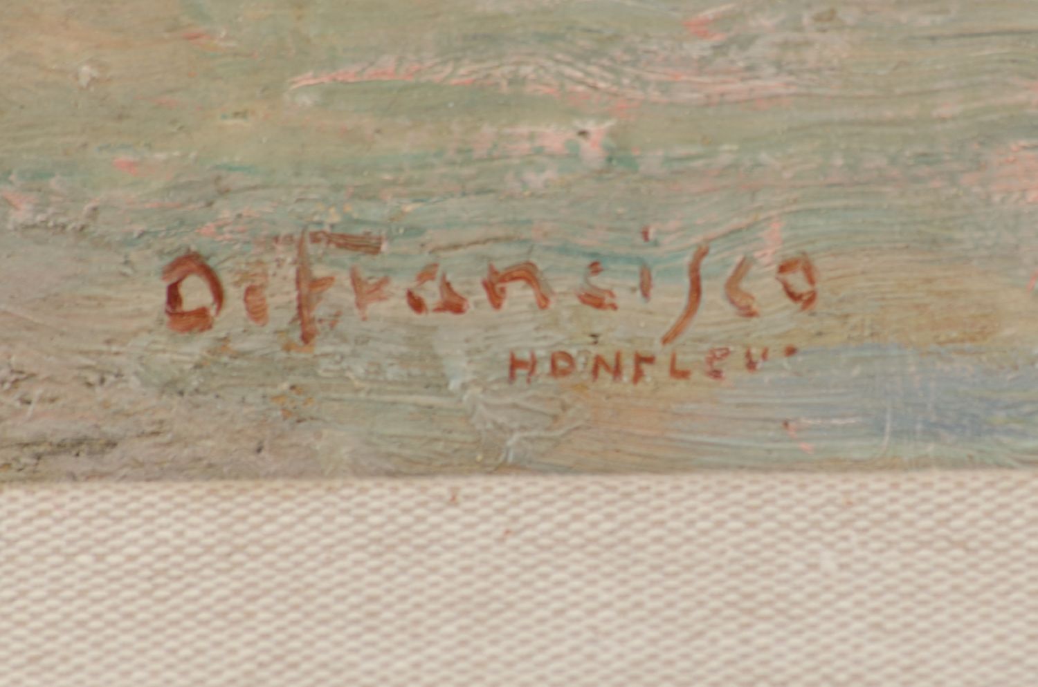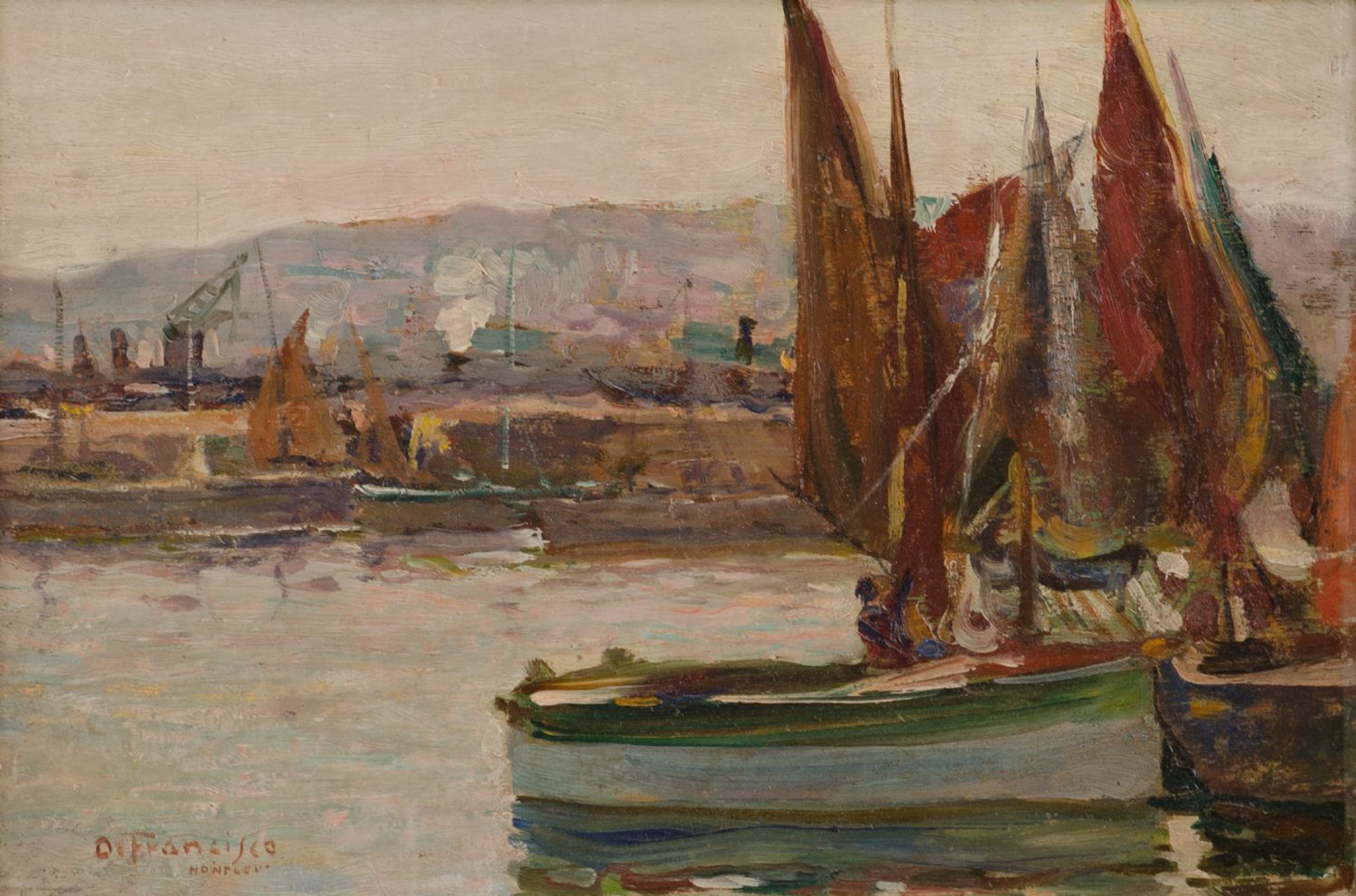 PIETRO DE FRANCISCO (Palermo 1873 - Mentone 1969) OLIO su tavoletta "Port Honfleur", firmato in basso a sinistra. Datato 1923 Misure: cm 33 x 22,5