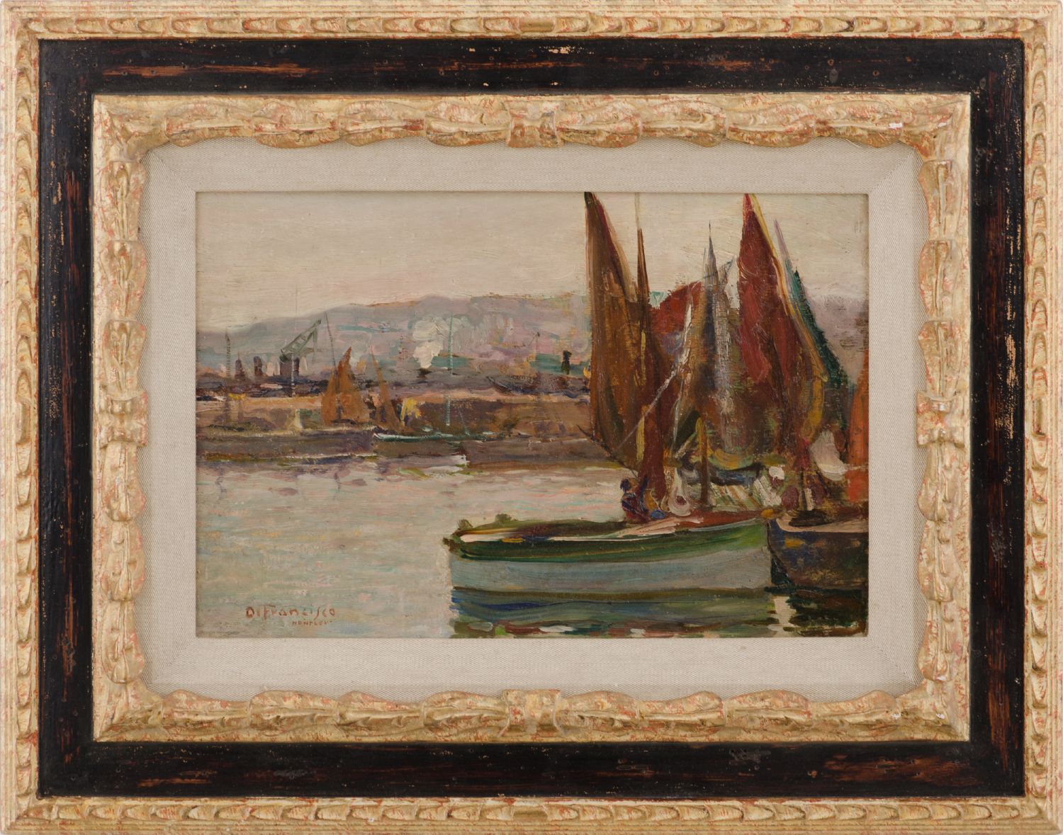 PIETRO DE FRANCISCO (Palermo 1873 - Mentone 1969) OLIO su tavoletta "Port...