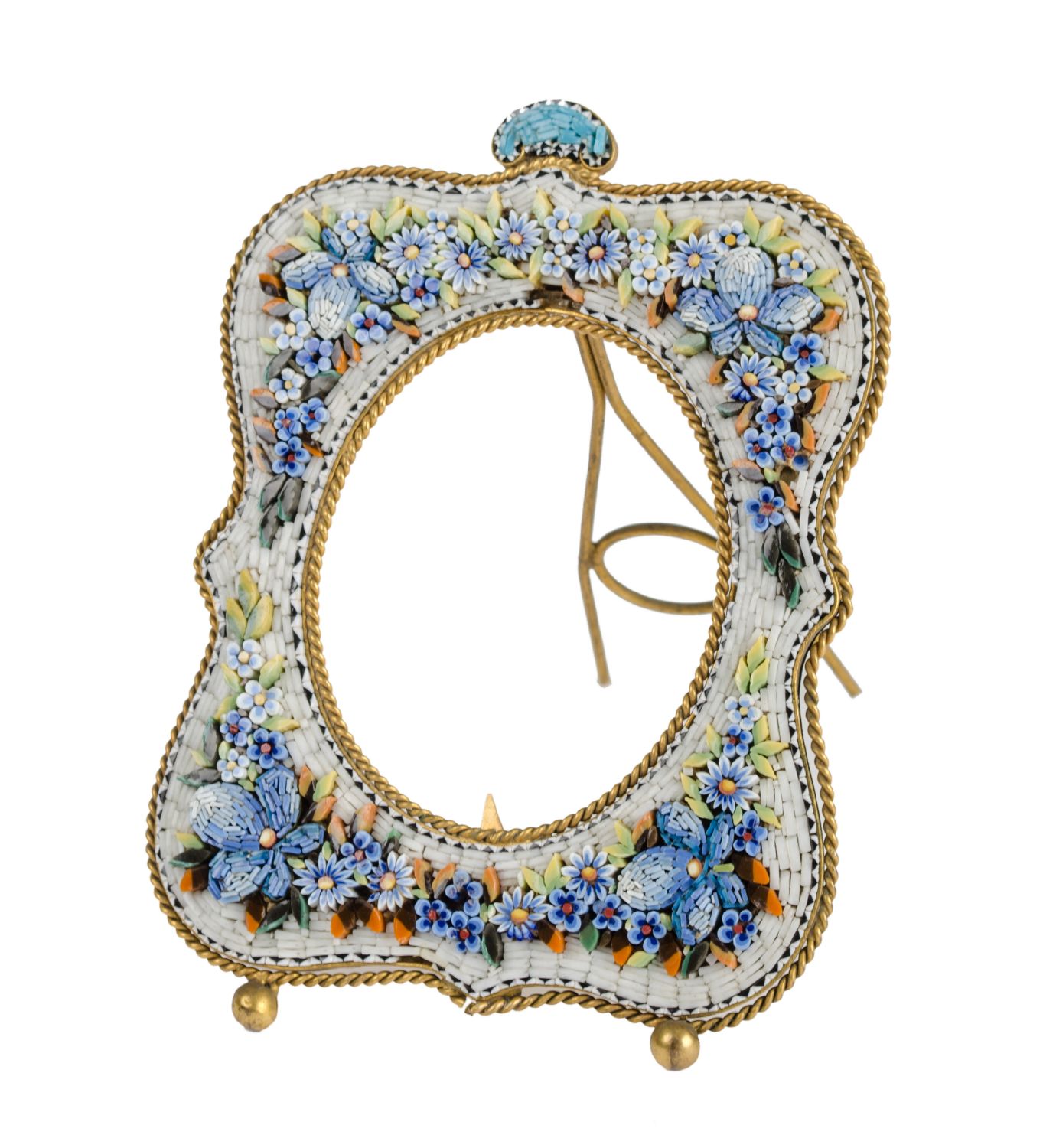 CORNICETTA in micromosaico dipinto e decorato a motivo floreale. Italia meta' '900 Misure: cm 11 x 15
