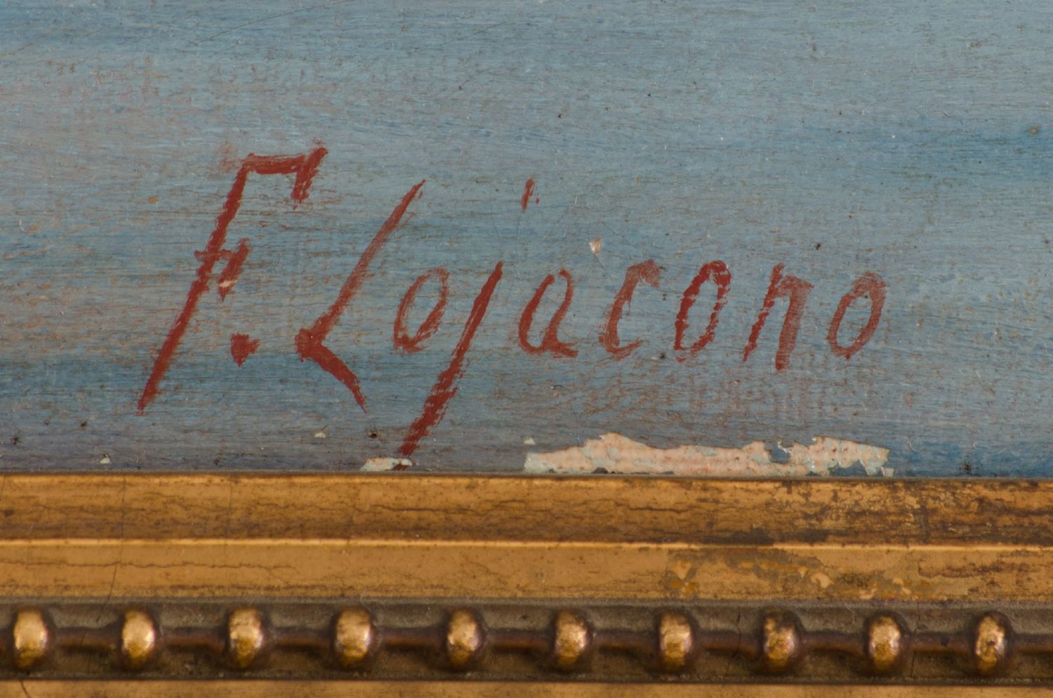 FRANCESCO LOJACONO (Palermo 1838 - 1915) OLIO su tela "marina con pescatori e...
