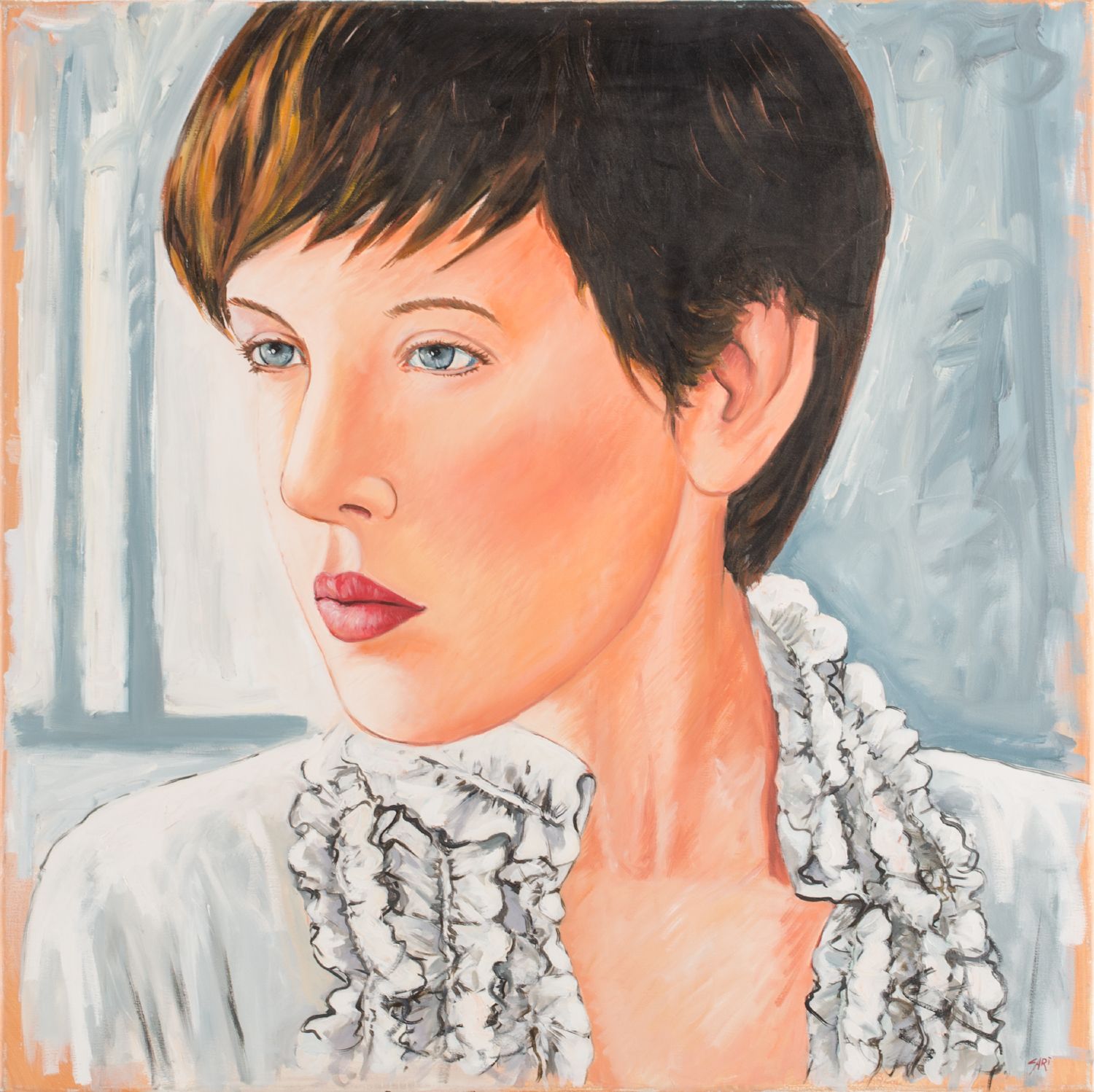 GIUSEPPE CARI' (Sambuca di Sicilia) OLIO su tela "volto femminile" con autentica dell'artista su foto, firmato in basso a destra. Misure: cm 80 x 80