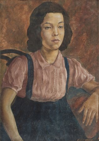 OLIO su cartone "mezzobusto di ragazza", firmato in basso a destra. XX secolo Misure: cm 50 x 70