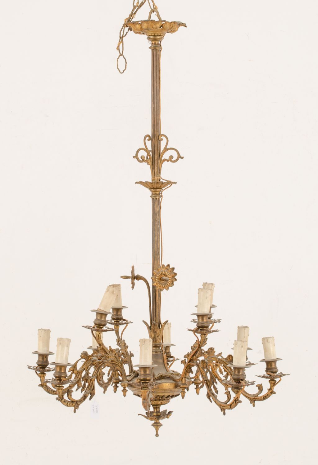 LAMPADARIO in metallo dorato a 16 luci. Sicilia XIX secolo Misure: h cm 88