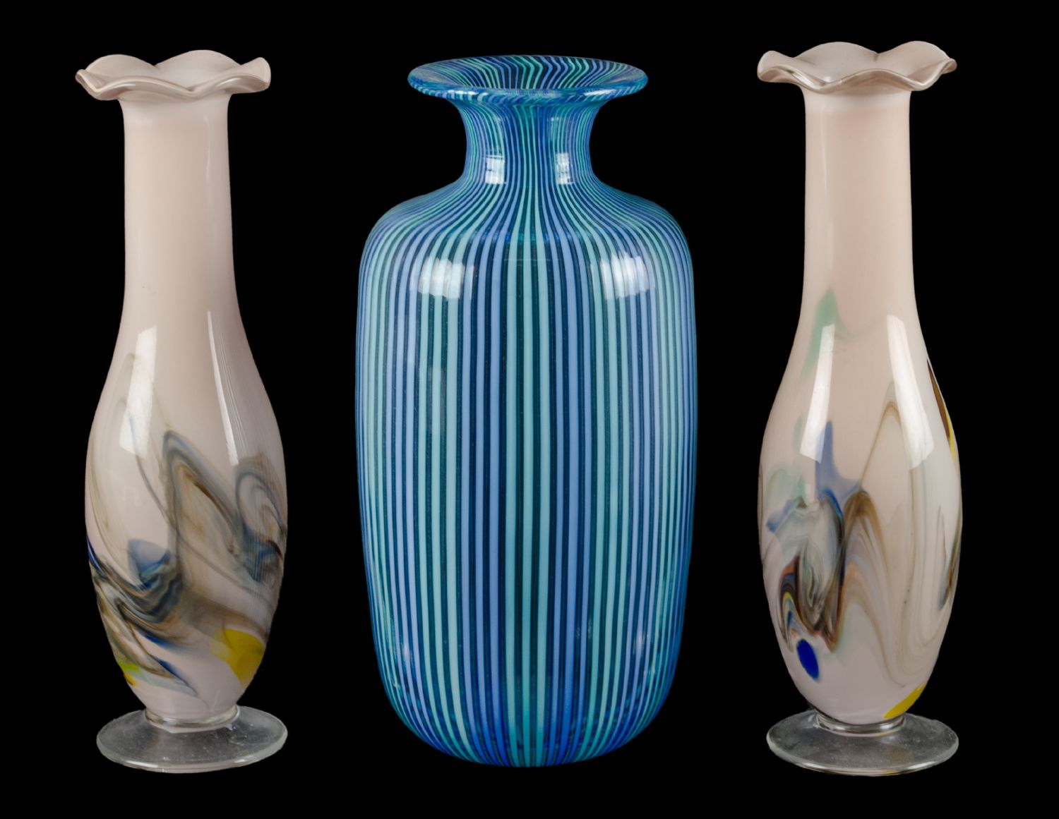 TRE VASI in vetro Murano. Primi '900 Misure: h cm 23