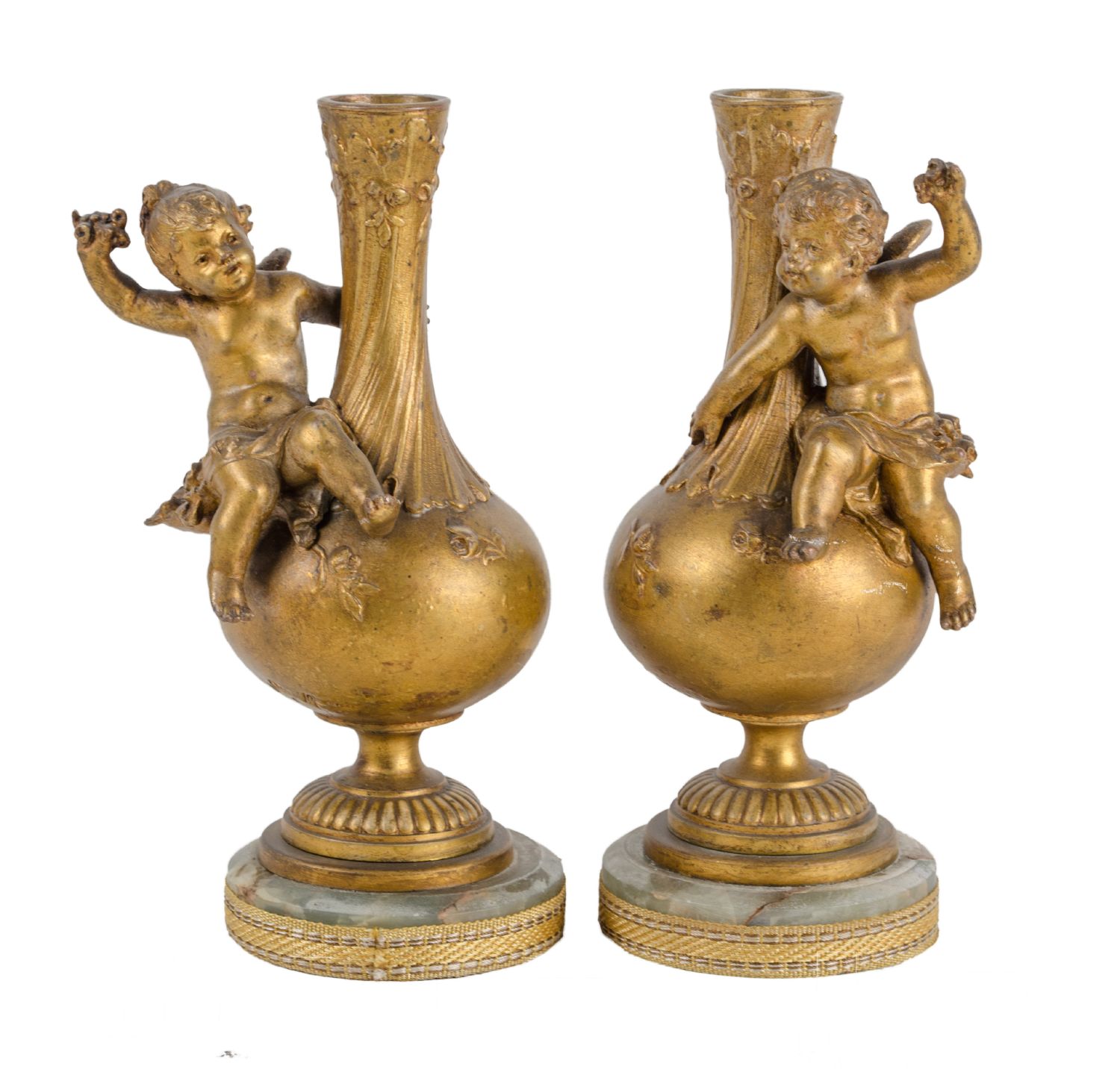 COPPIA VASETTI con angioletti in bronzo. Francia primi '900 Misure: h cm 22