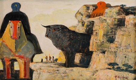 SALVATORE FIUME (Comiso 1915 - Milano 1997) OLIO su masonite "ipotetica...