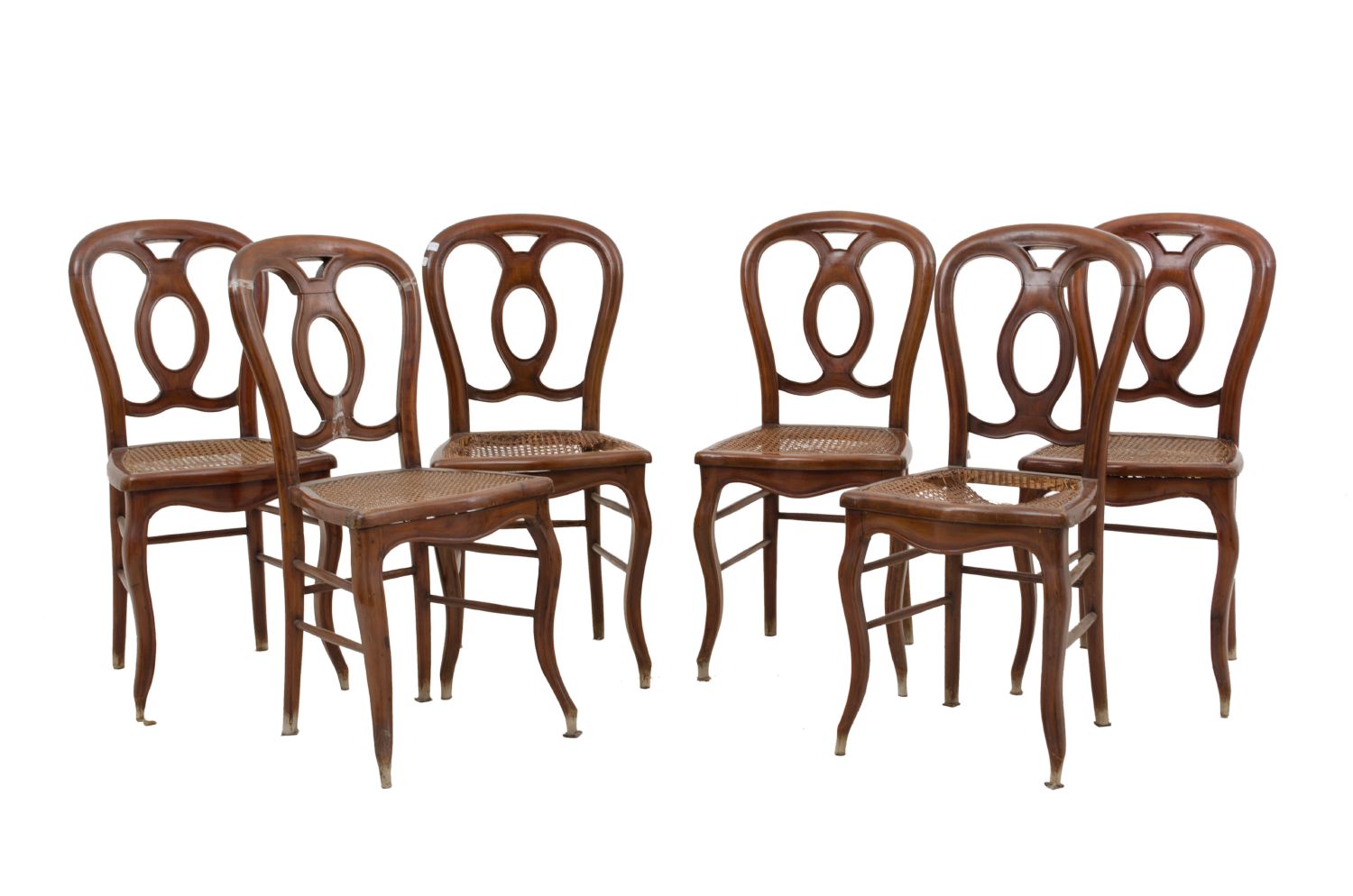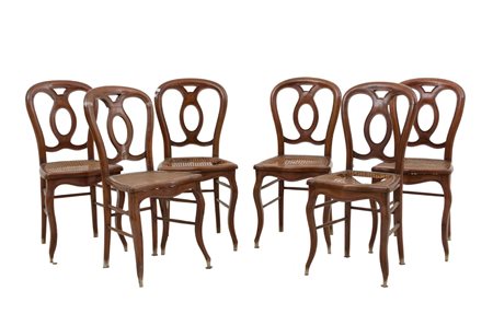 SEI SEDIE Luigi Filippo in noce con seduta in finocchino (seduta h cm 45). Francia XIX secolo Misure: h cm 87