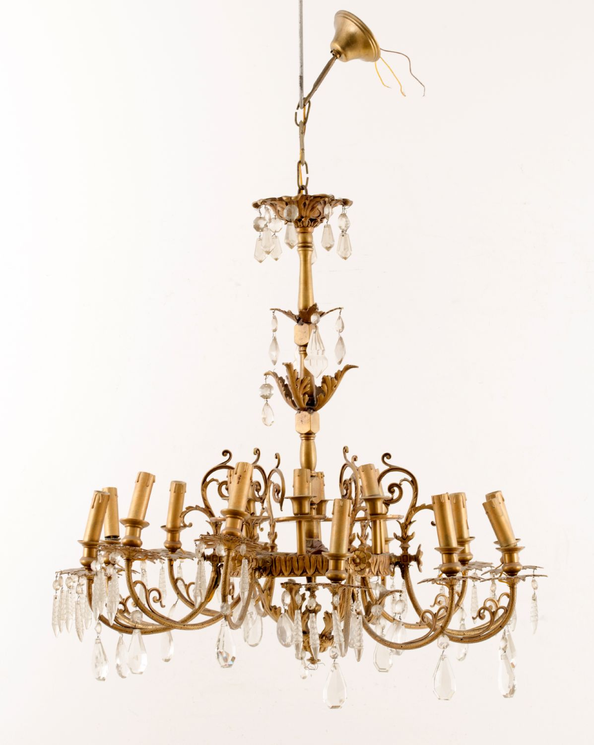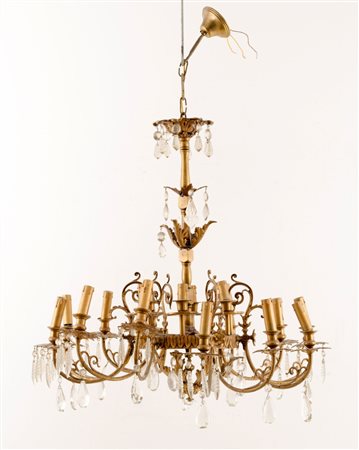 LAMPADARIO a diciotto luci in bronzo con brindoli. Meta' '900 Misure: h cm 80
