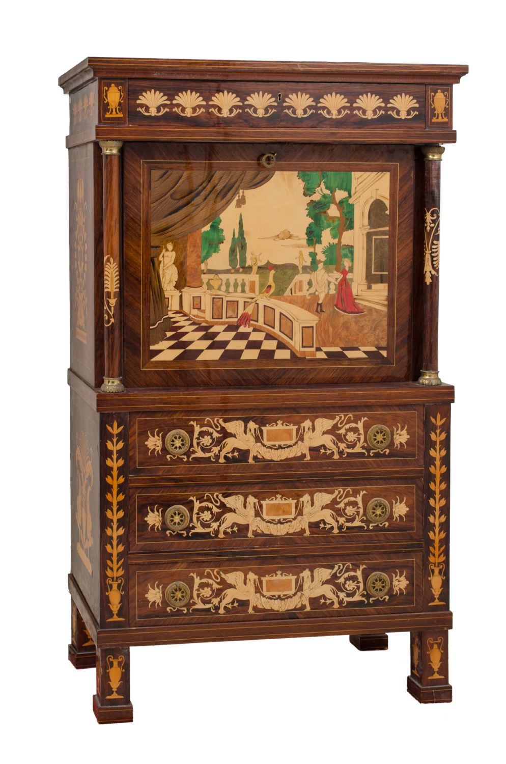 SECRETAIRE in mogano riccamente intarsiato stile Maggiolini. Italia XX secolo...