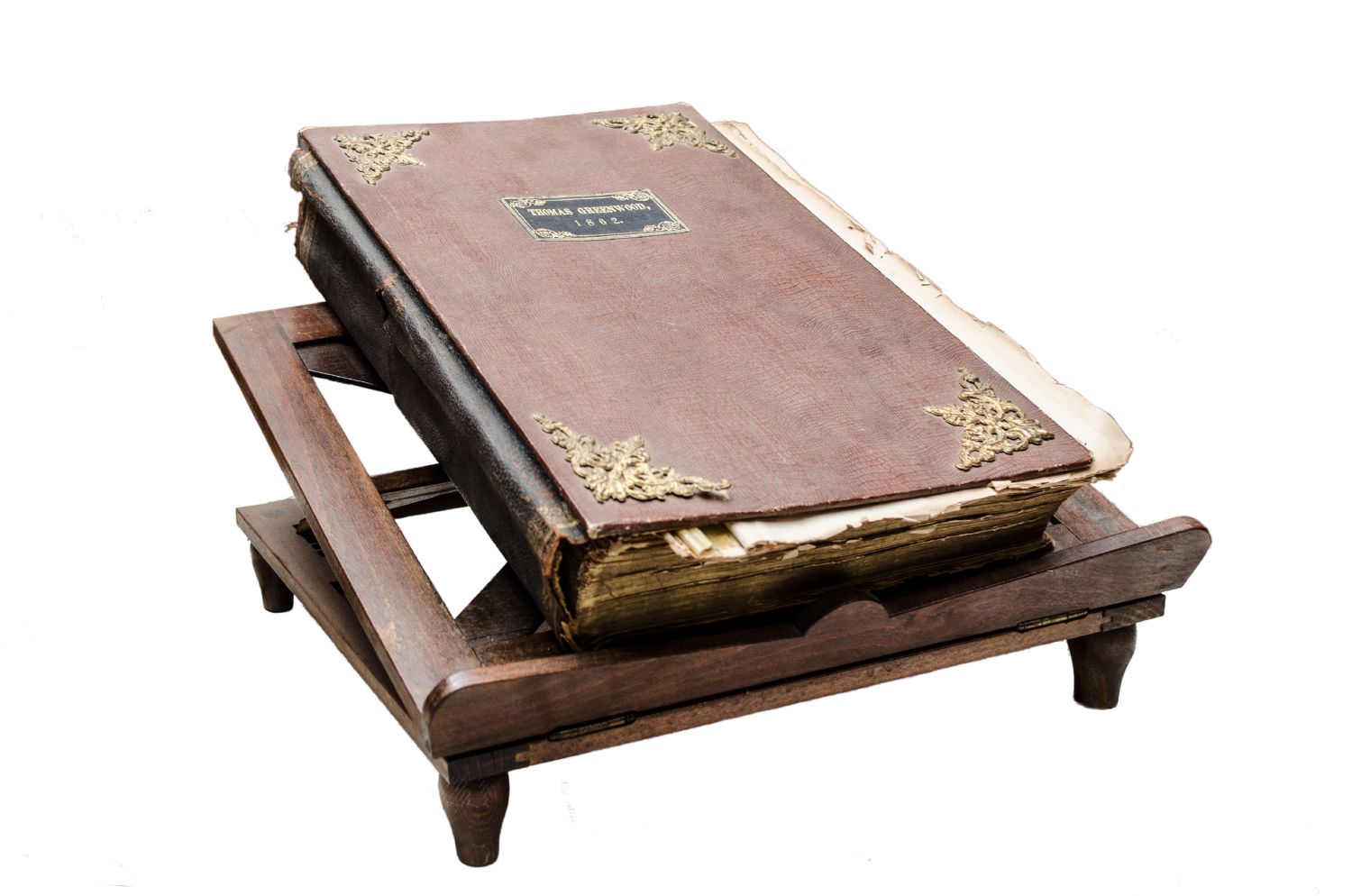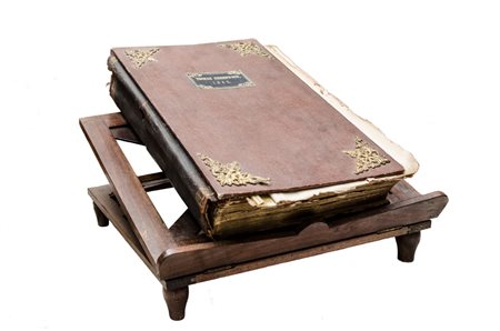 LEGGIO in mogano con LIBRO "Antico Testamento" contenente stampe colorate. 1862 Misure: cm 39 x 33