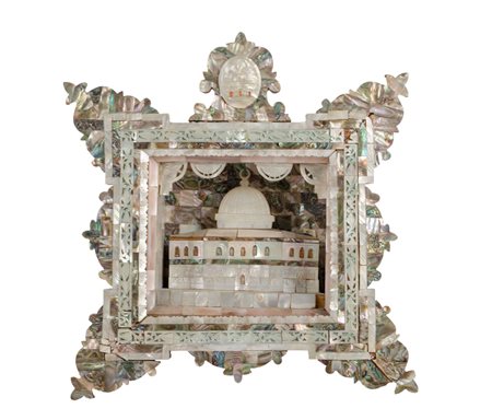 TECA in madreperla raffigurante "Basilica di San Pietro" (mancanze). XX secolo Misure: cm 28 x 10 x h 31