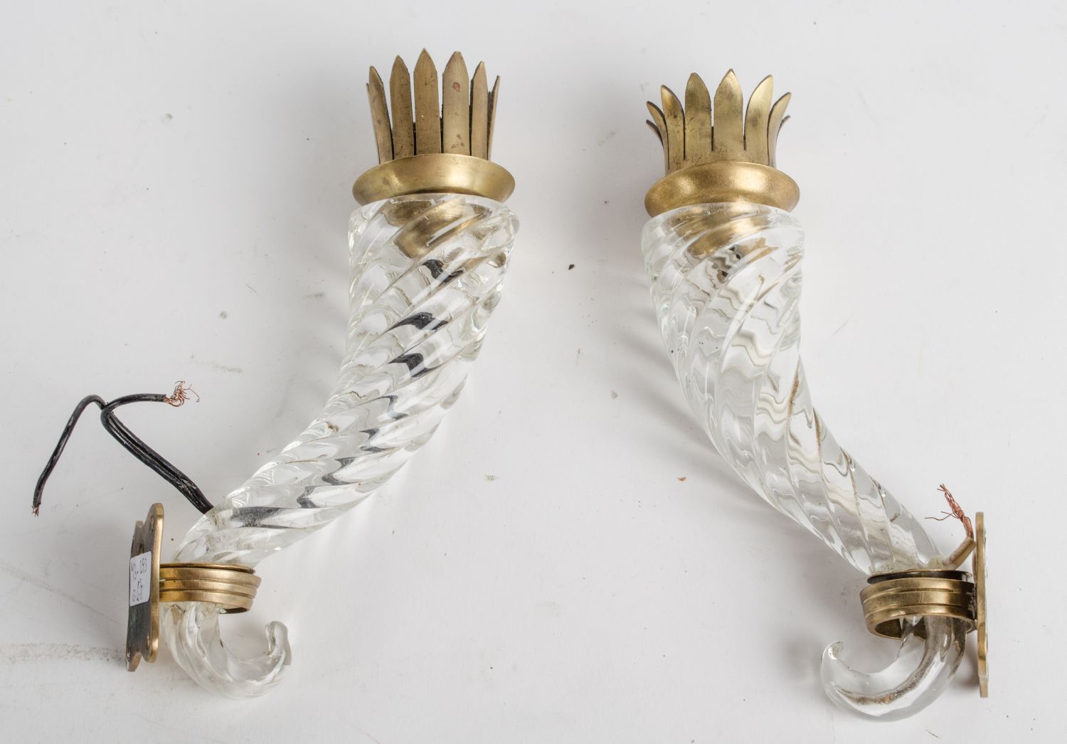 COPPIA APPLIQUES ad una luce in vetro ed ottone. Periodo deco' meta' '900 Misure: h cm 17