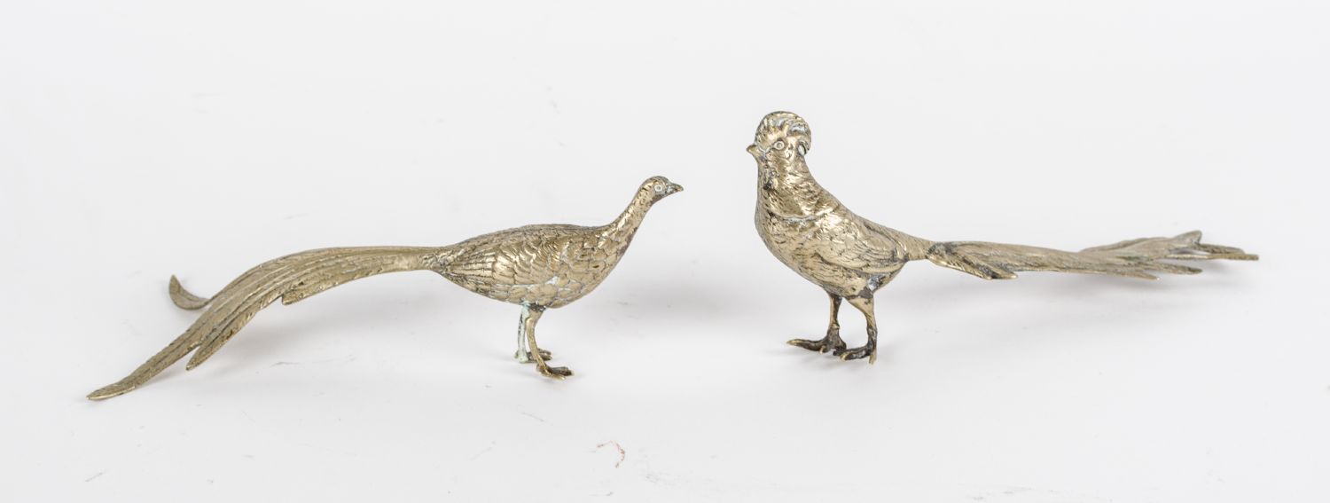 DUE SCULTURE in ottone dorato "pavoni". XX secolo Misure: cm 21 x 9