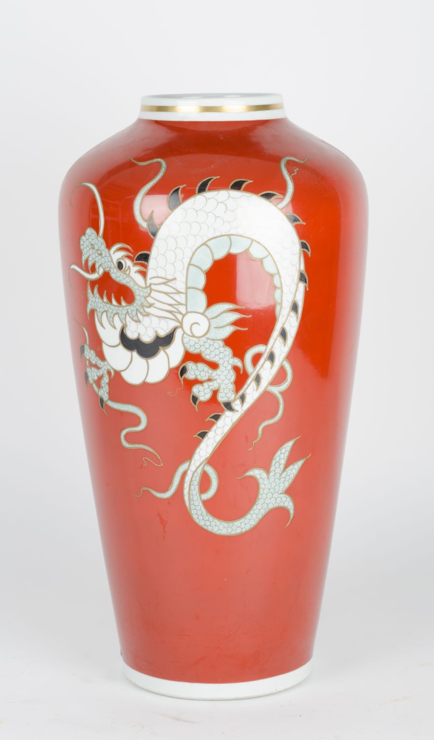 VASO in porcellana tedesca dipinta a mano raffigurante "dragone". XX secolo Misure: h cm 50