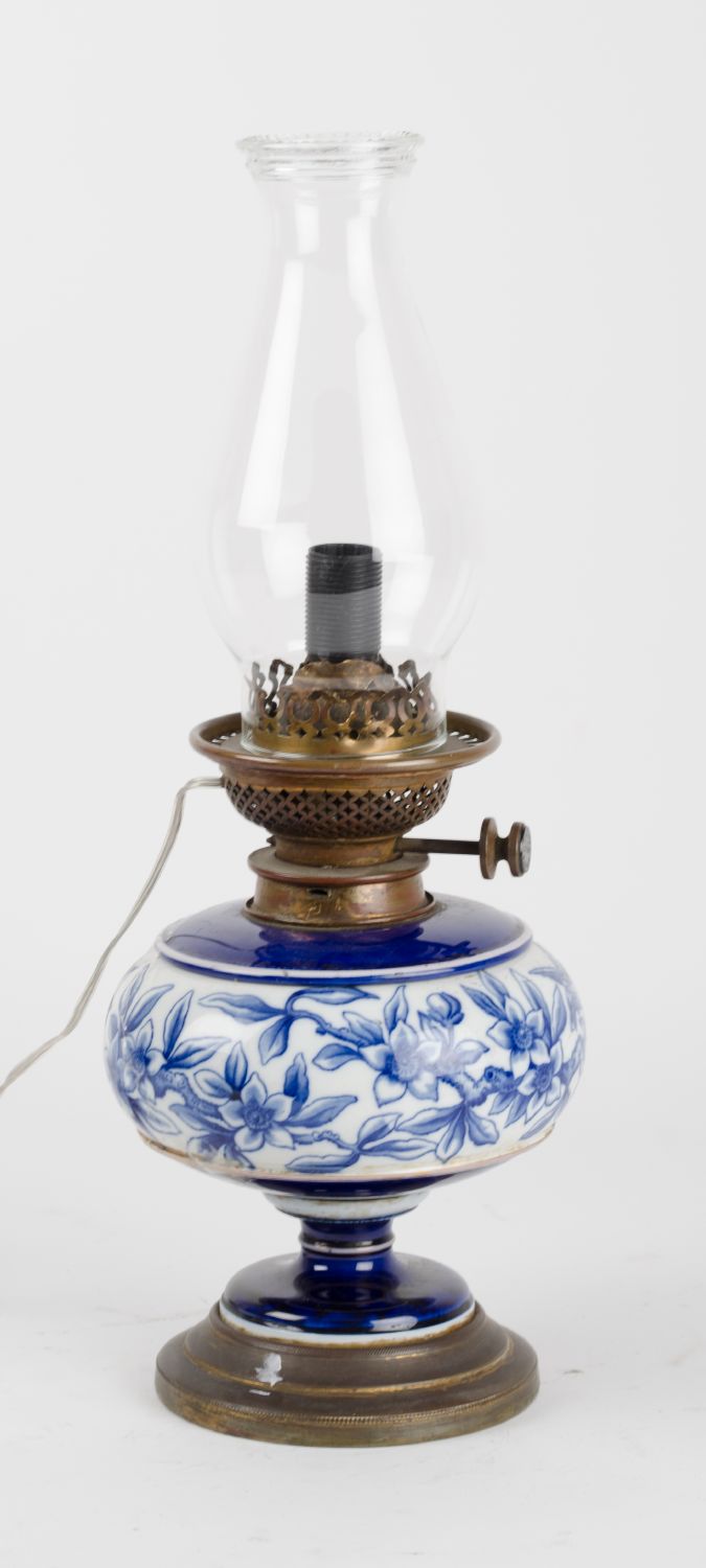 LUME in porcellana nei toni del blu decorata a motivo floreale. Primi '900 Misure: h cm 46
