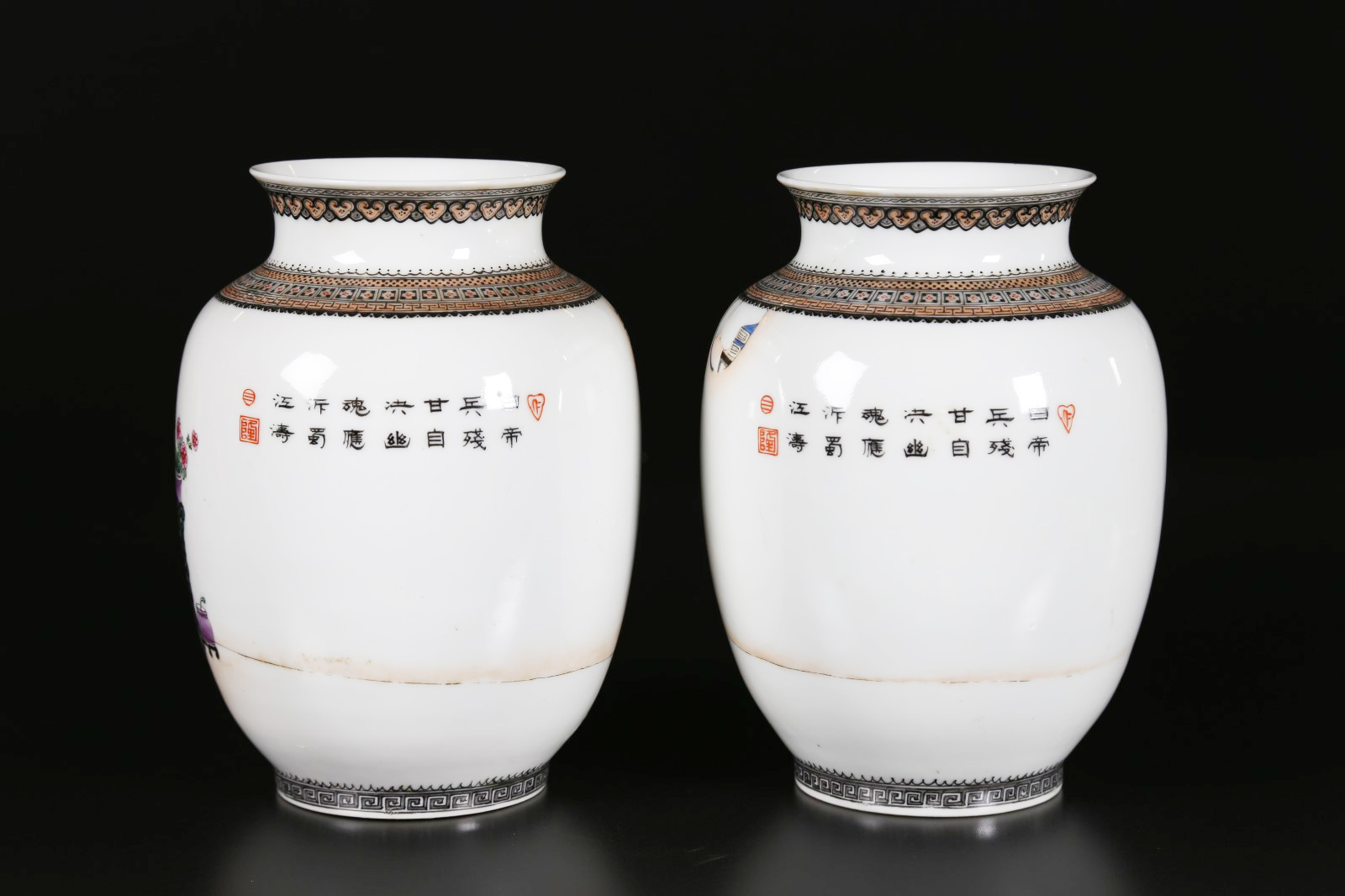 Arte Cinese Coppia di vasi in porcellana dipinta con dame di corte Cina,...