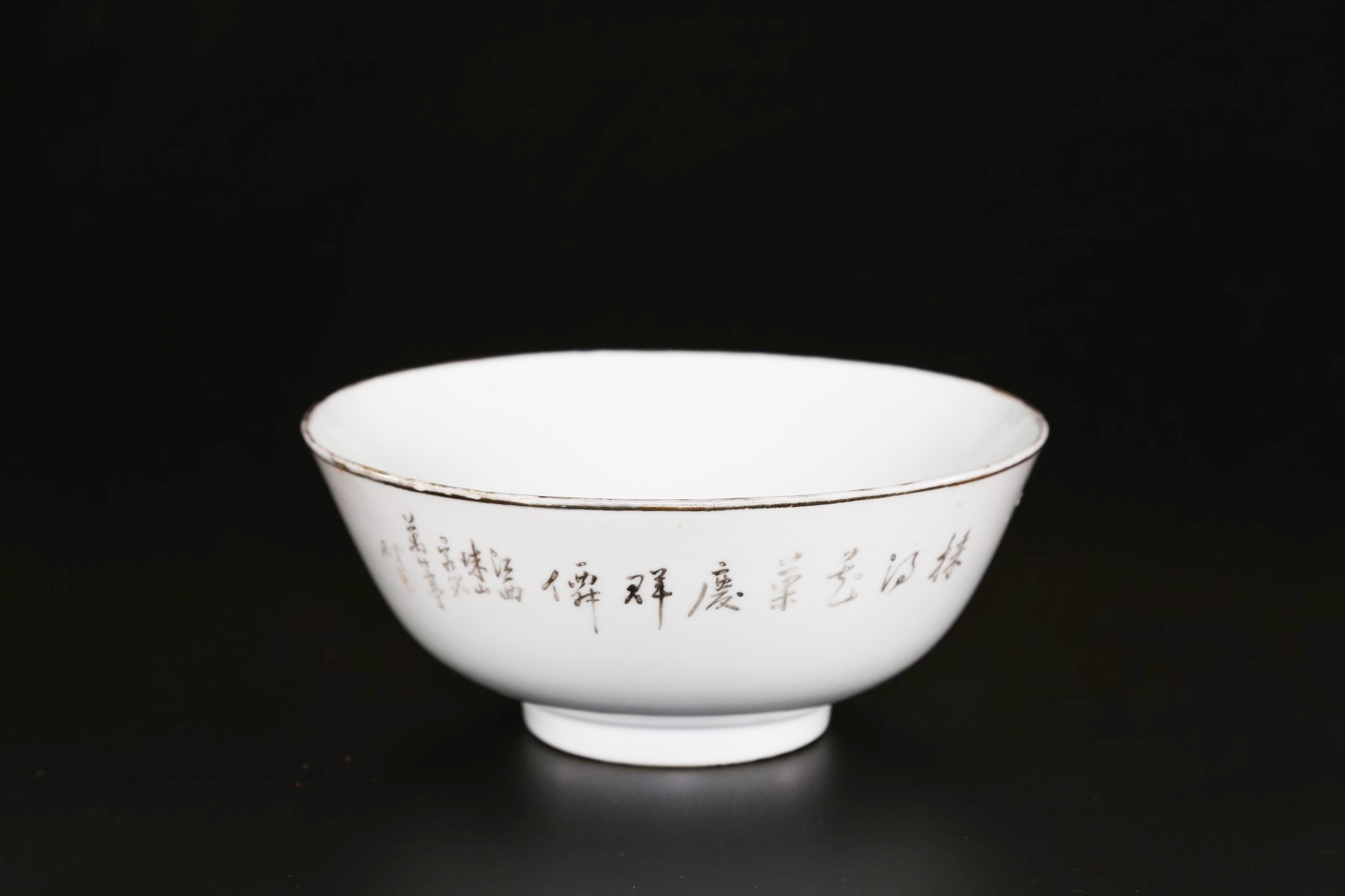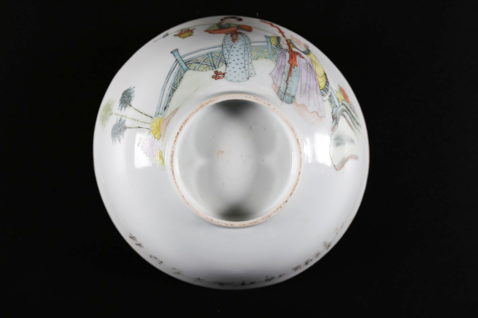 Arte Cinese Coppa in porcellana dipinta con figure ed iscrizioni Cina, XX...