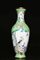 Arte Cinese Vaso smaltato Cina, dinastia Qing, fine XIX secolo. -. Cm 32,00. Sul fondo verde brillante decorato con motivi vegetali spiccano due grandi riserve lobate: l'una con volatili appoggiati su una roccia e l'altra raffigurante due dame in un giardino. Diametro bocca 8,5 cm