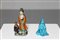 Arte Cinese Due Guanyin in porcellana Cina, XVIII - XIX secolo. -. Cm 17,00. Coppia di Guanyin in porcellana, L'una invetriata di turchese (h.11 cm), l'altra stante affiancata da un bambino e decorata in stile Tang con i colori sancai che risparmiano il viso.