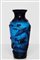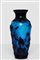 Arte Cinese Vaso in vetro di Pechino Cina, XIX - XX secolo. -. Cm 8,20 x 26,50. Vaso azzurro con bocca estroflessa decorato con applicazione di vetro cammeo blu arrangiate a formare un paesaggio con gru, fiori e rocce. L'oggetto mostra la presenza di pagliuzze dorate nella colata principale azzurra. Marchio a sigillo a quattro caratteri sulla base. Il diametro indicato è quello della bocca