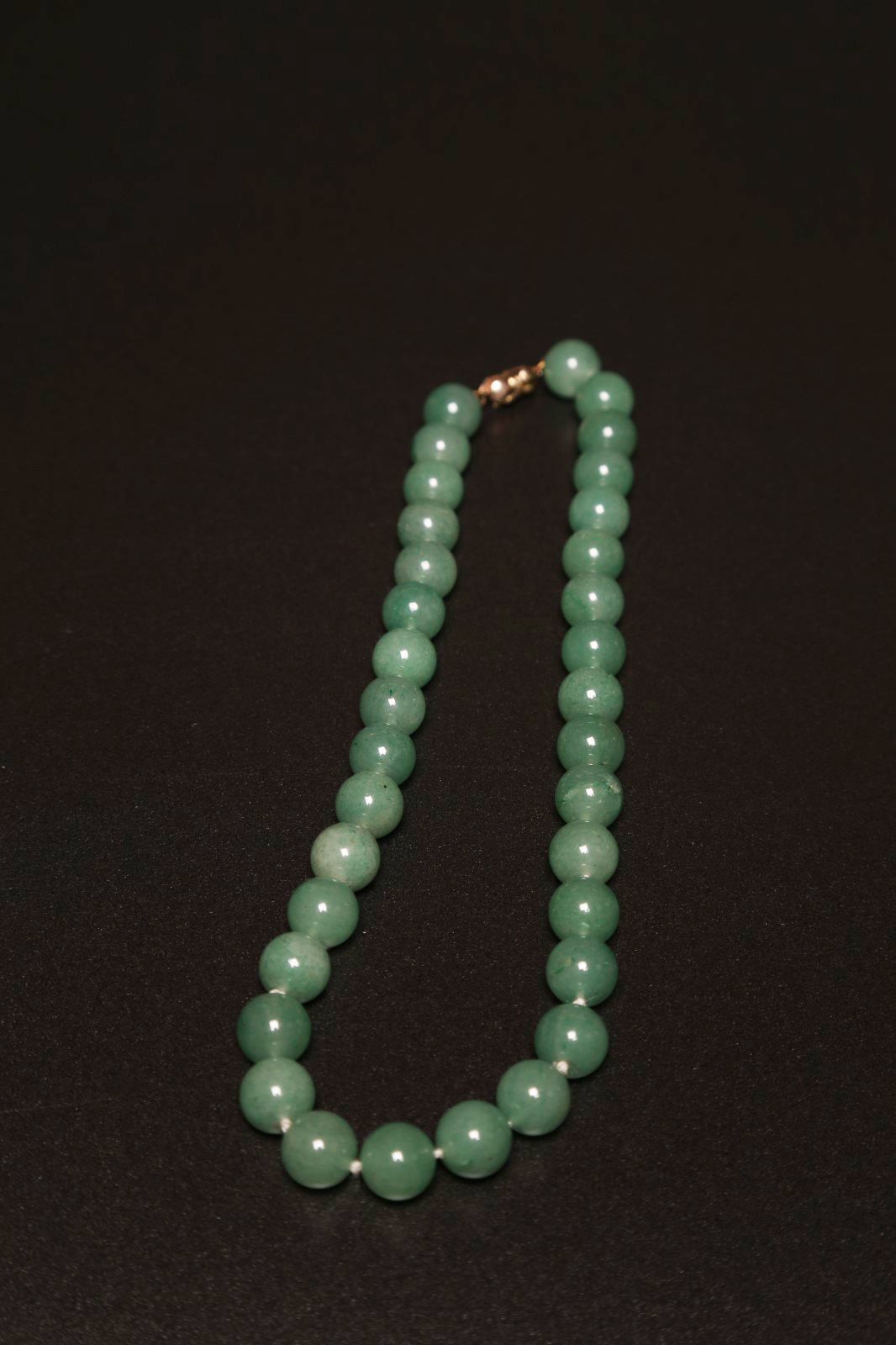 Arte Cinese Collana in giadeite Cina, XX secolo. -. . Costituita da perle di giadeite e chiusura in oro.