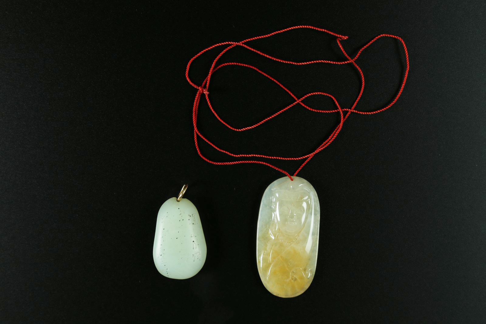 Arte Cinese Due pendenti in giada Cina, XX secolo. . Cm 7,00. il più grande...
