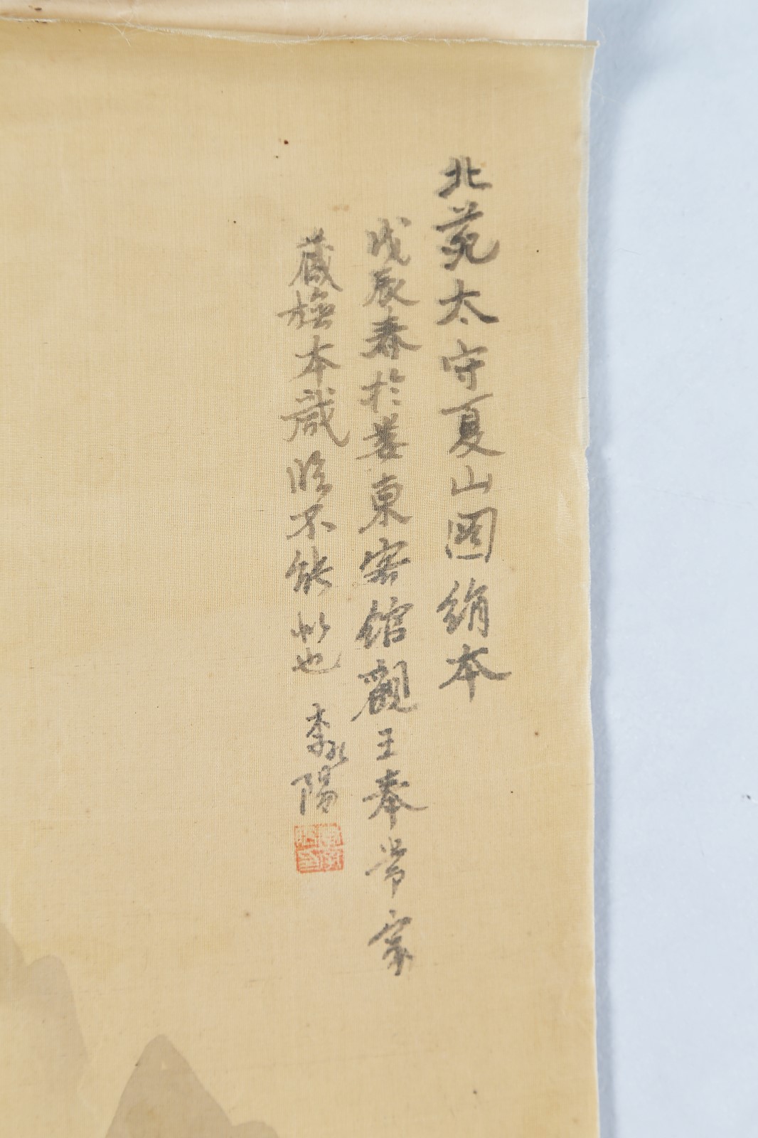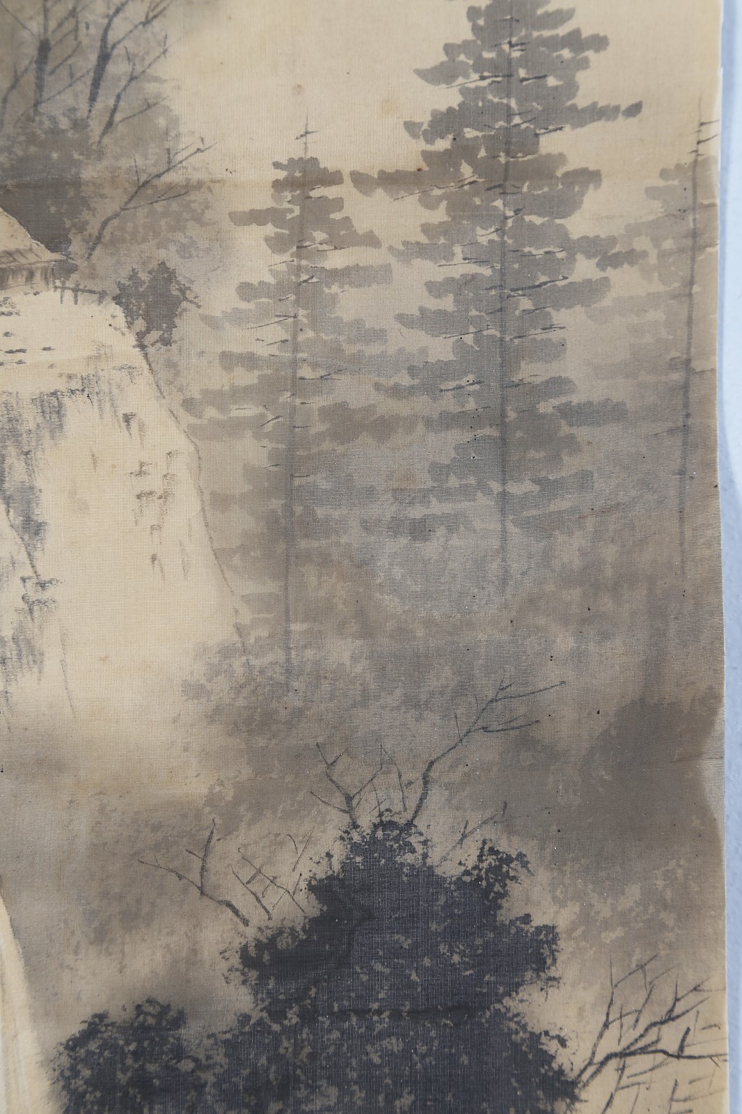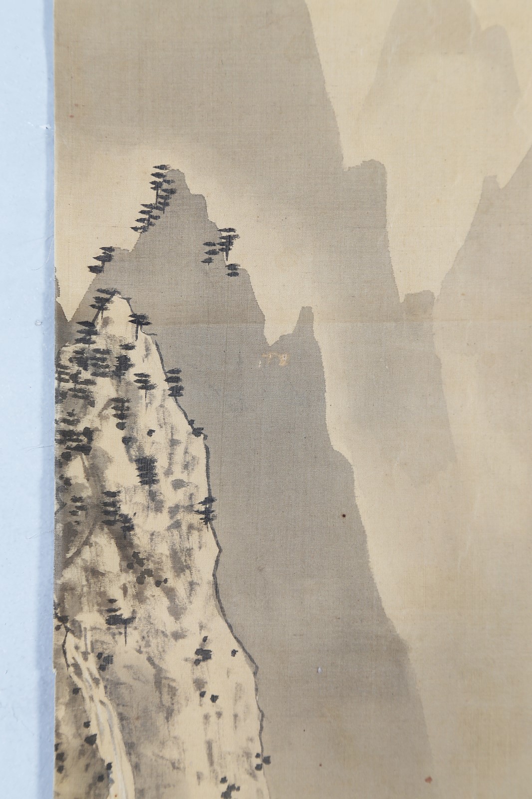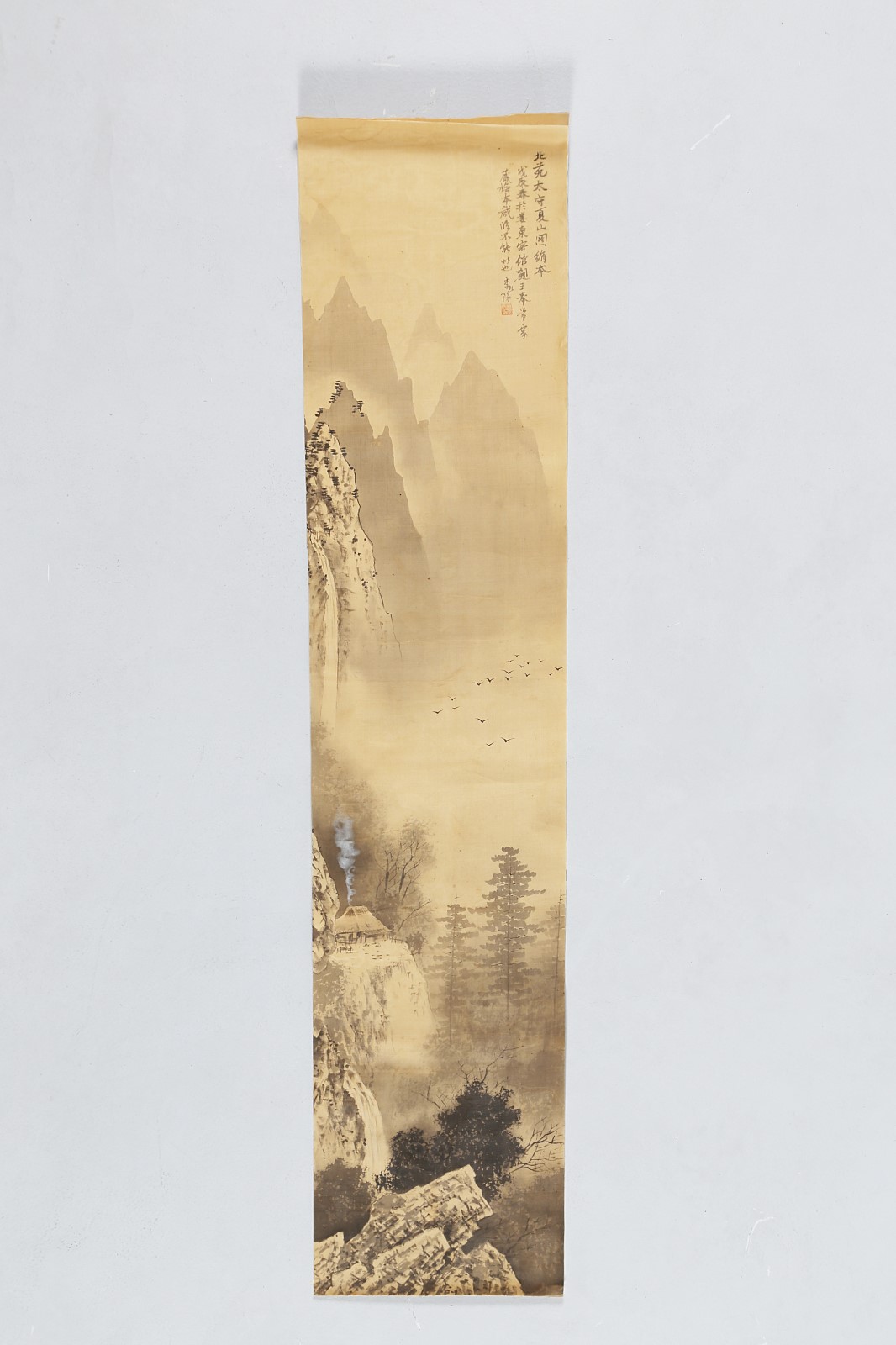Arte Giapponese Dipinto su seta raffigurante un paesaggio montuoso con iscrizioni Giappone, fine XIX secolo Inchiostro su seta. -. Cm 23,50 x 111,00.