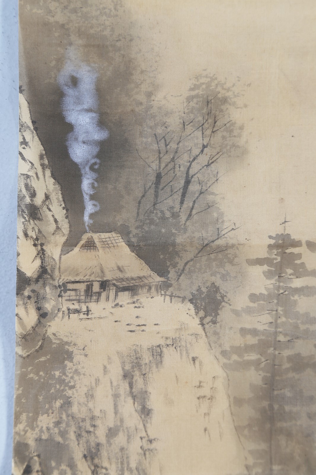 Arte Giapponese Dipinto su seta raffigurante un paesaggio montuoso con...