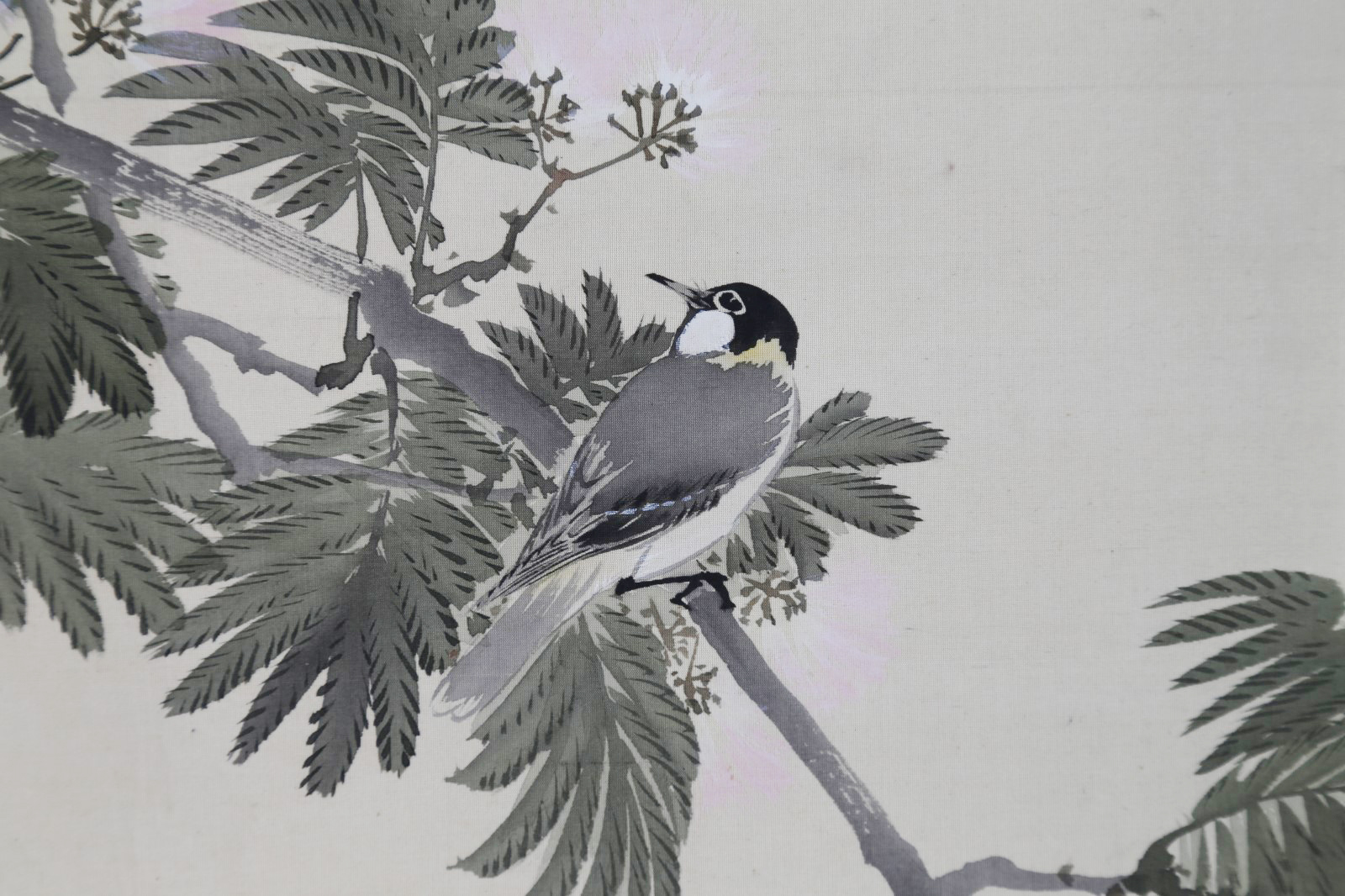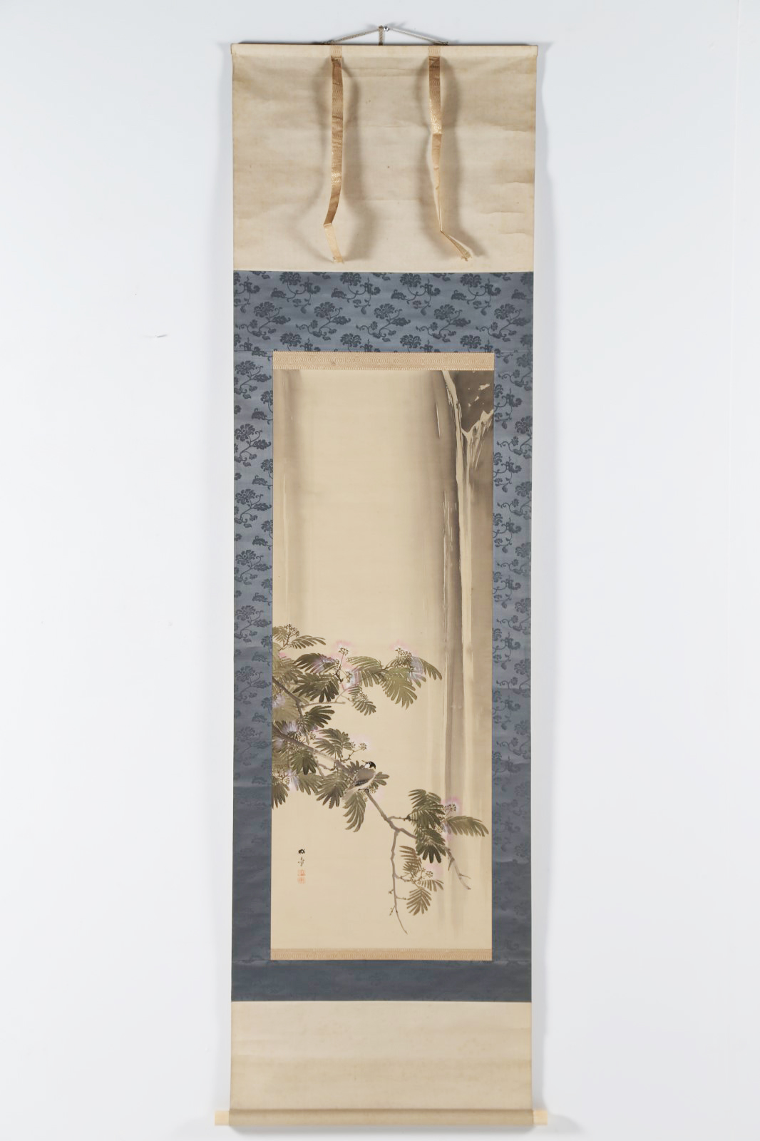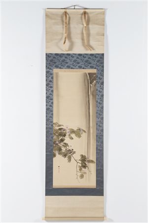 Arte Giapponese Morohoshi Seisho (1870 - 1943) Dipinto raffigurante una mimosa con sfondo di cascata con firma e sigillo Giappone, periodo Taisho (1912 - 1926) Inchiostro e colori su seta . -. Cm 56,20 x 200,00. Rotolo verticale raffigurante un ramo di mimosa e sullo sfondo una cascata resa naturalisticamente in riserva sfruttando il naturale colore del supporto. Morohoshi Seisho è stato un pittore di stile giapponese (Nihonga) specializzatosi nello stile della scuola naturalistica Maruyama-Shijo. Scatola non originale.