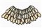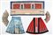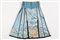 Arte Cinese Lotto di cinque tessuti cinesi in seta Cina, dinastia Qing, XIX secolo. -. Cm 179,00 x 76,00. Di cui due gonne: una in lampasso di seta rossa ricamato con motivi floreali nei toni del celeste (girovita 118 cm X h. 96) ; l'altra in seta azzurra, suddivisa in pannelli da profili scuri e finemente ricamata con fiori color pesca e farfalle (girovita 113 cm X h.90 cm). Il terzo elemento è rettangolare (179 X 76 cm) e ricamato con vivaci pannelli raffiguranti personaggi e dragoni bordati e sottolineati da filo dorato e scenicamente divisi da archi a cuspide che racchiudono fenici e fiori di loto. Il tessuto presenta qualche lacerazione. Coppia di tessuti a frange, l'uno lobate e l'altro a punta, entrambi profusamente ricamati con filo si seta a motivo floreale (l.37 X h. 24 cm).