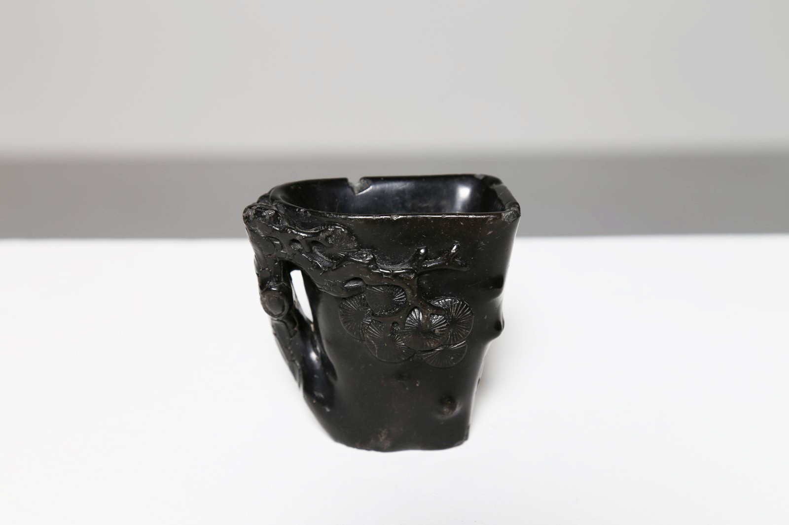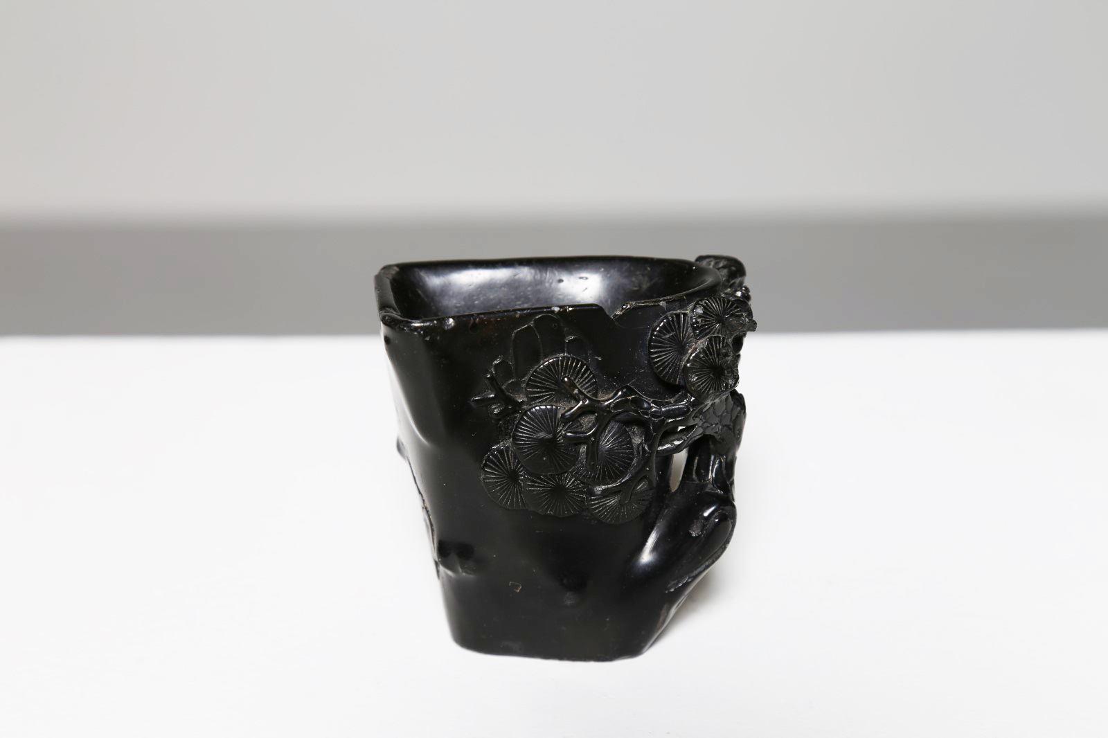 Arte Cinese Coppa libatoria in pietra scura Cina, XVIII secolo. -. Cm 7,50 x 8,00.