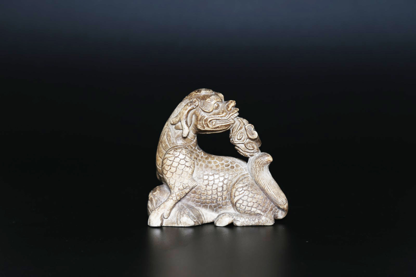 Arte Cinese Qilin in pietra saponaria Cina, XVIII secolo. -. Cm 9,00. Intaglio in pietra saponaria raffigurante un Qilin, una creatura mitologica di buon auspicio.